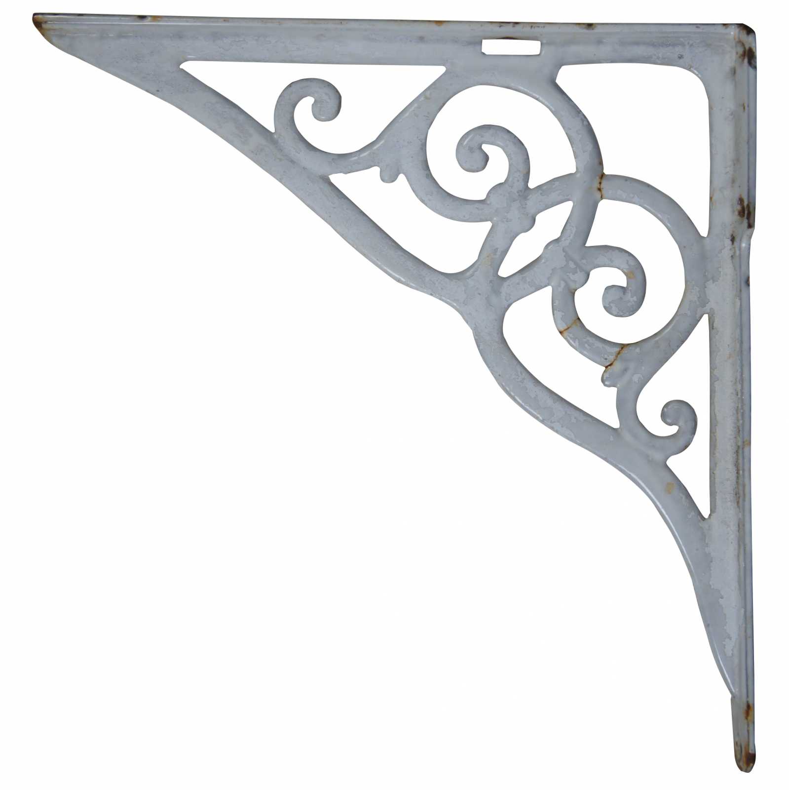 Single antique white enameled cast iron shelf bracket with a lovely scrolled design.