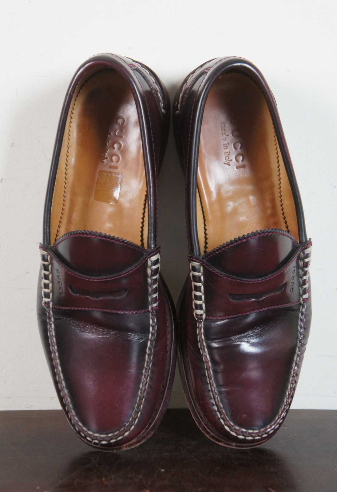 Gucci polished leather Camaleon men’s slip on loafer in chardonnay brown, product number 368442.