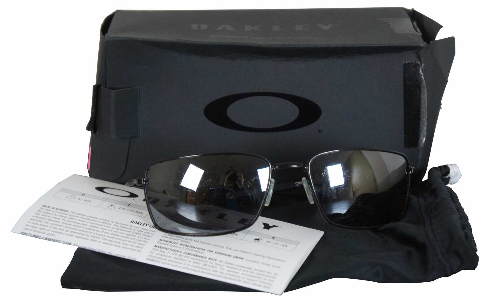 Oakley Square Wire polished black with black iridium sunglasses, product number 4075-01. Includes original cloth pouch and packaging.