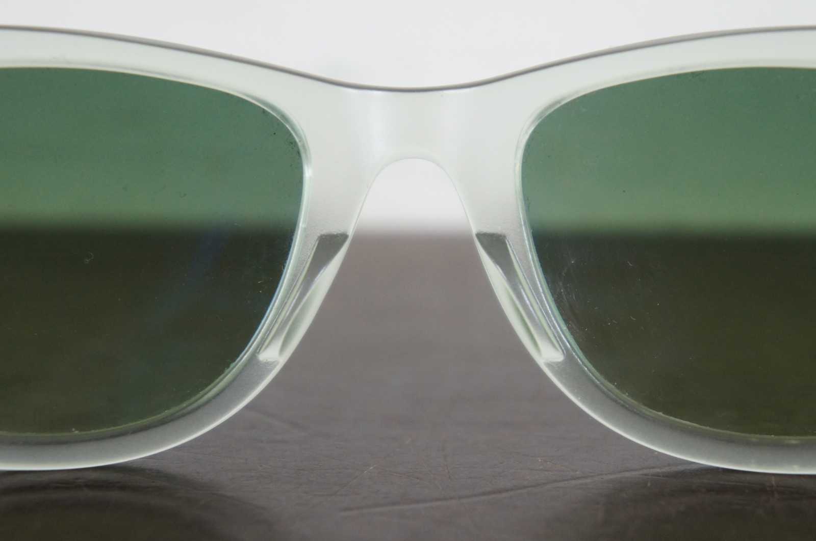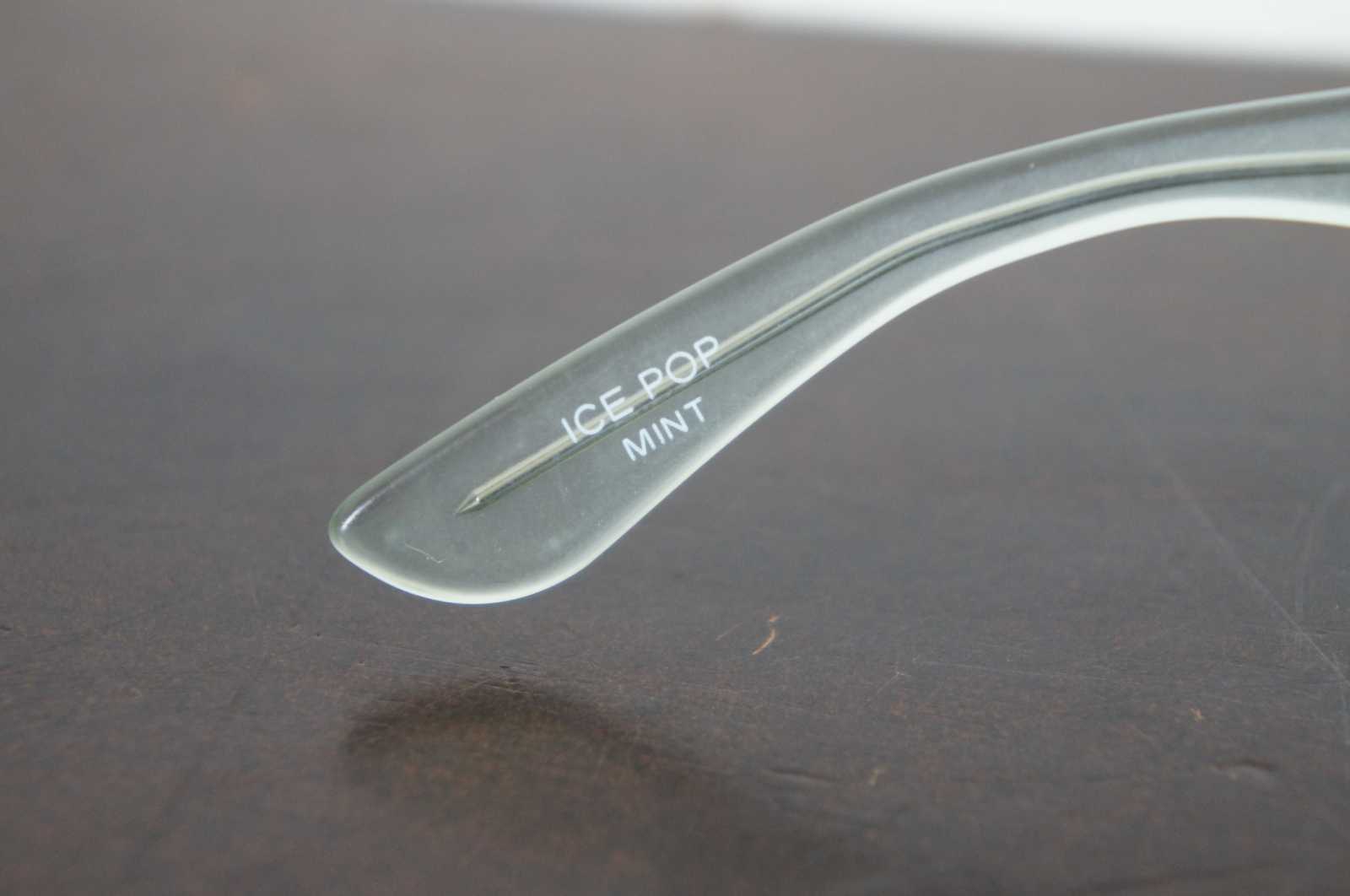 Ray Ban Wayfarer sunglasses with transparent Ice Pop Mint green frame, product number RB2140 6058/3M.