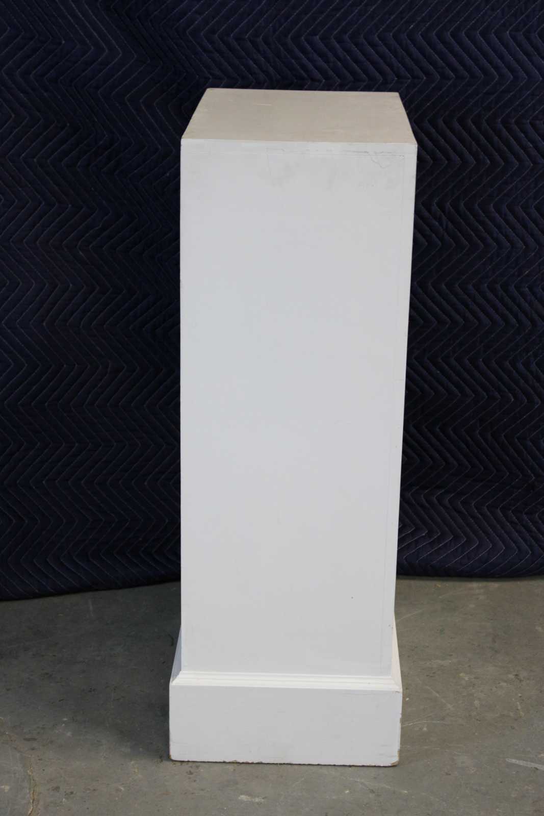 Two vintage rectangular wood pedestals. Painted white with molding along the bottom.
