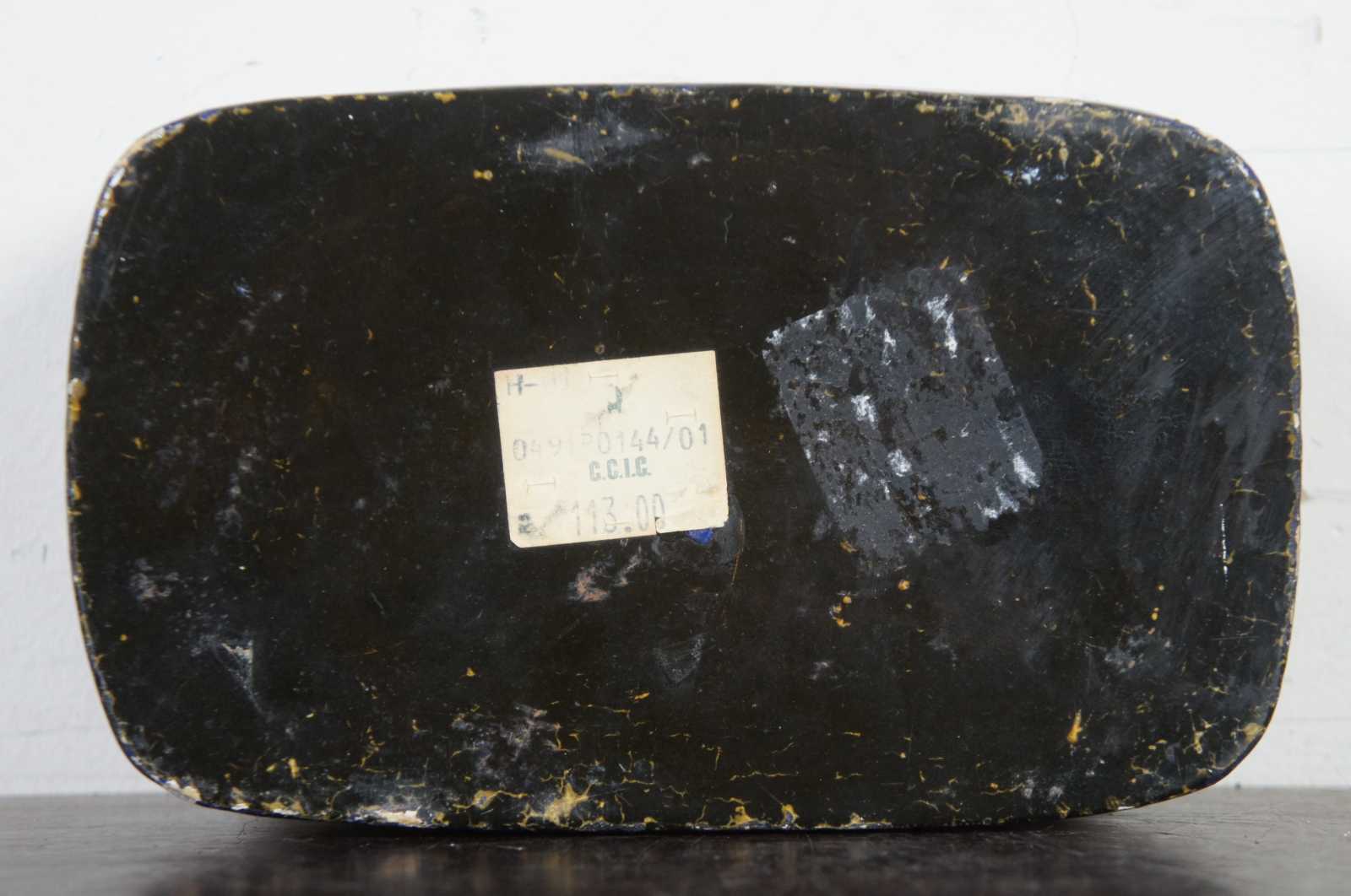 Vintage Asian style trinket box hand painted in blue lacquer with pink, orange and green flowers.