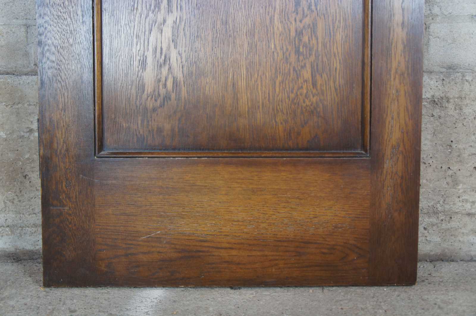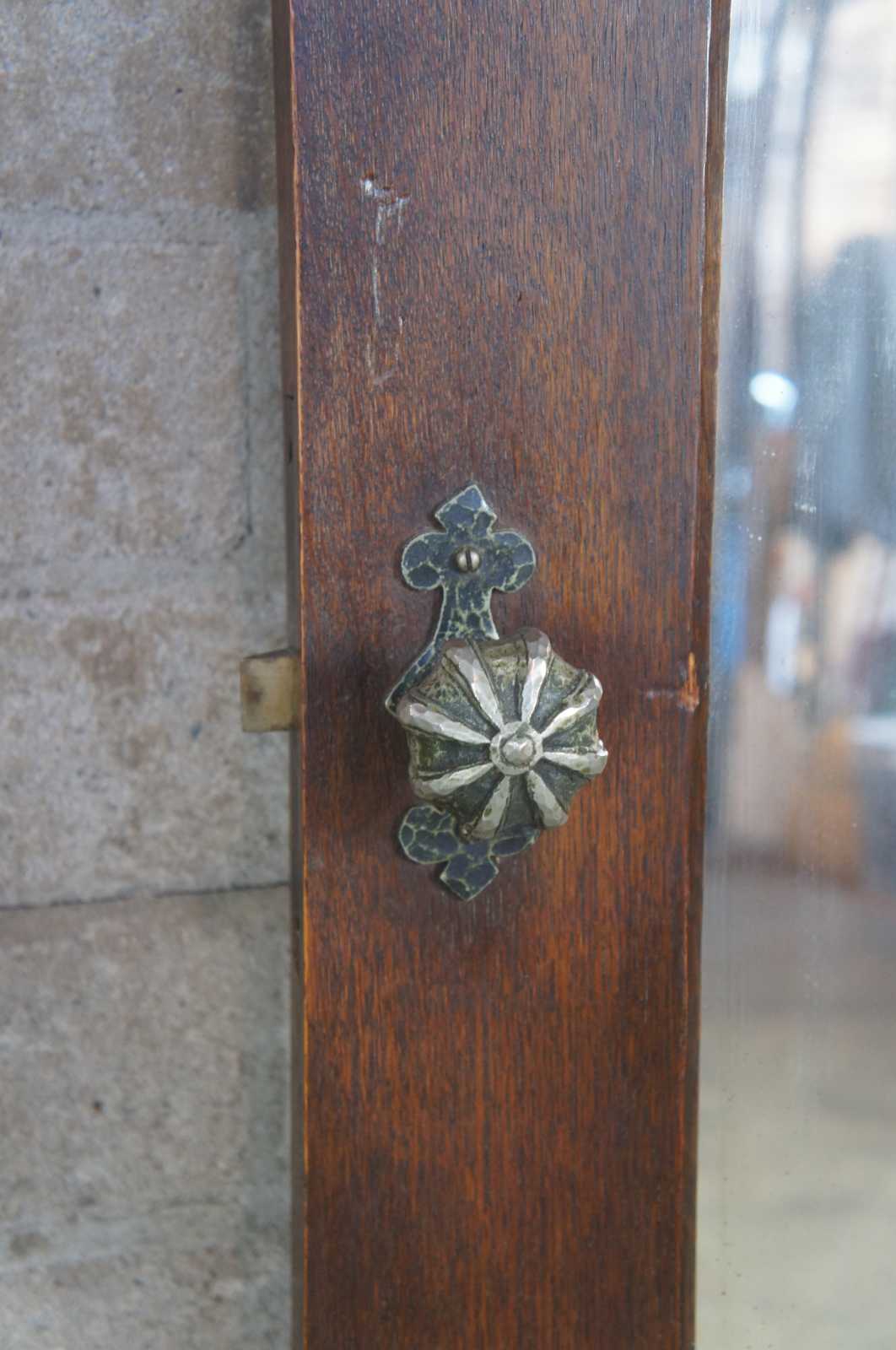 Early 20th century oak door. Features a large crental mirror and Spanish Revival hammered hardware. Reclaimed from one of the first homes built in Oakwood, Ohio by Harry I Schenck, circa early 1900s. Great for use as a dressing mirror. 5 Available