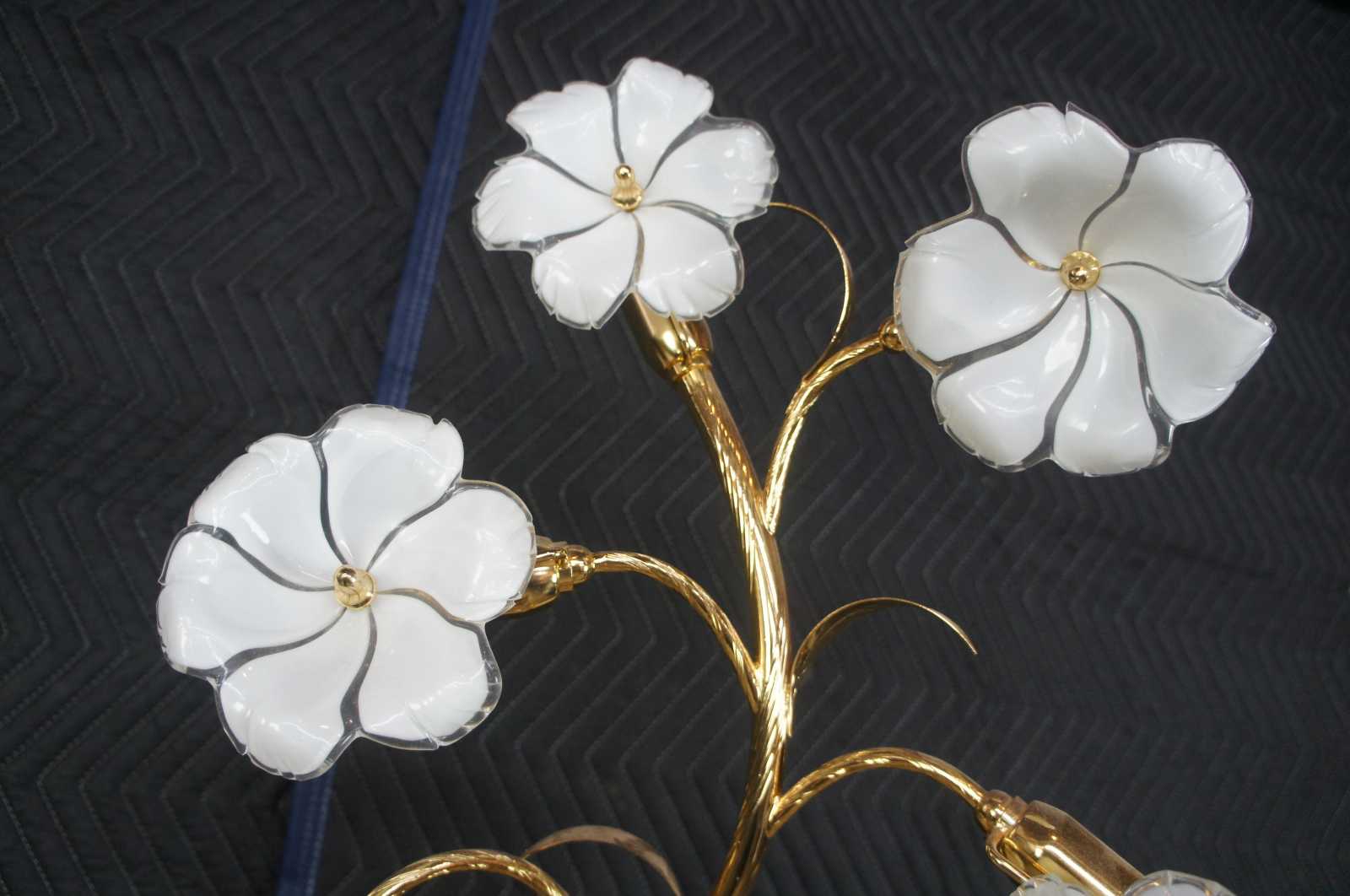 Fair condition, could not get fountain to work, one light needs rewired, some broken tips of flowers, chips to front of bowl, structurally very good, see pictures.