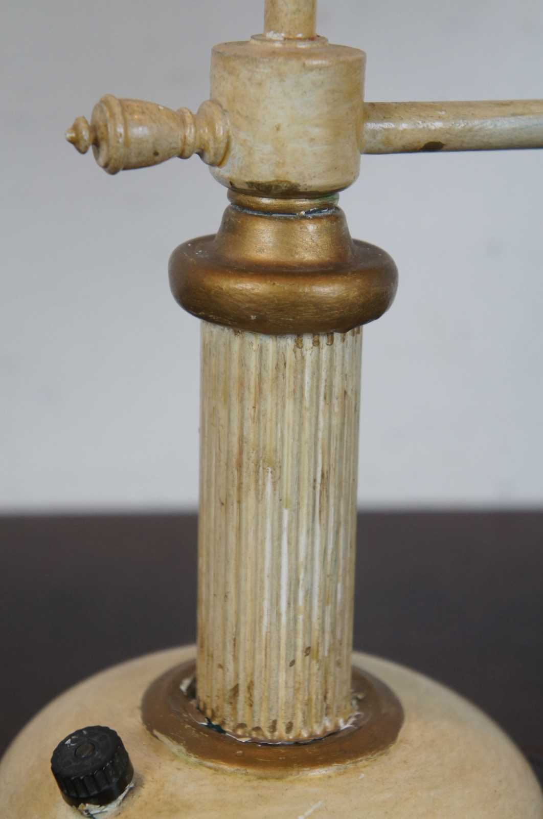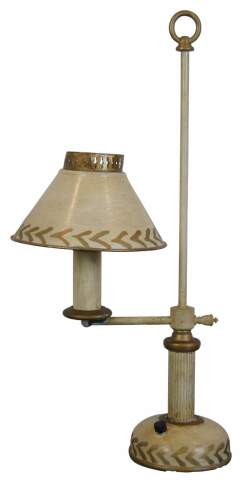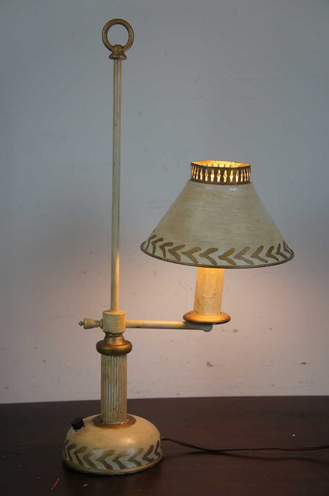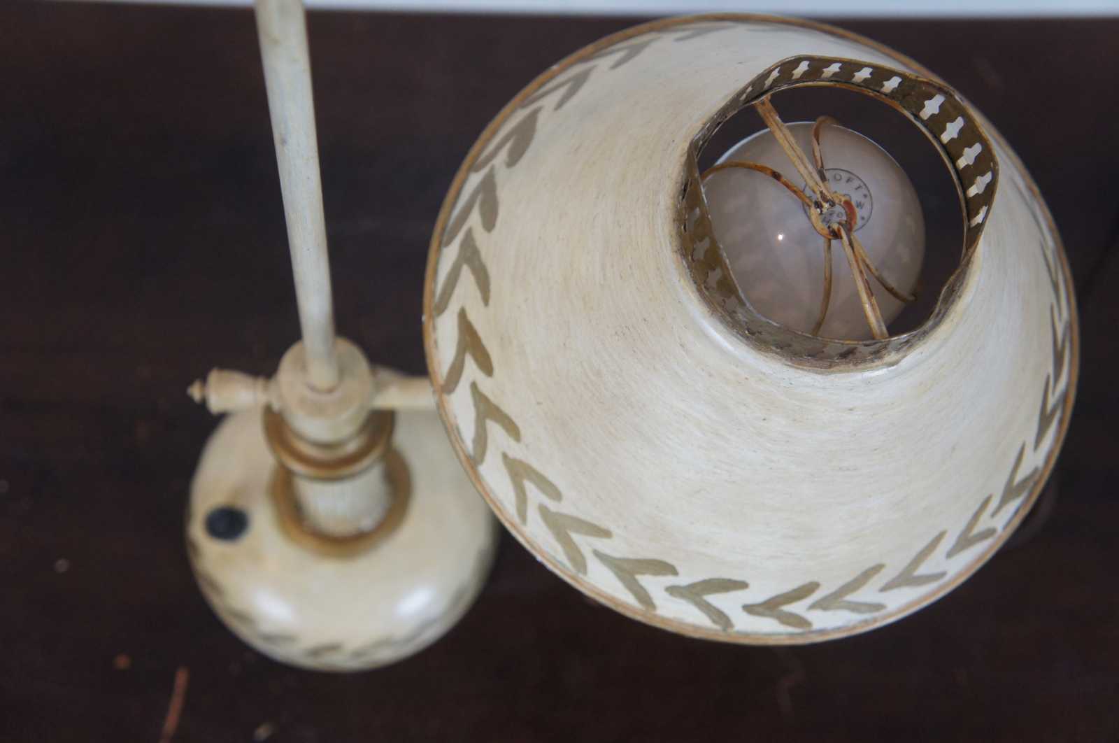 Vintage adjustable tole ware student or library lamp, once dark green but re-painted in off white and gold.