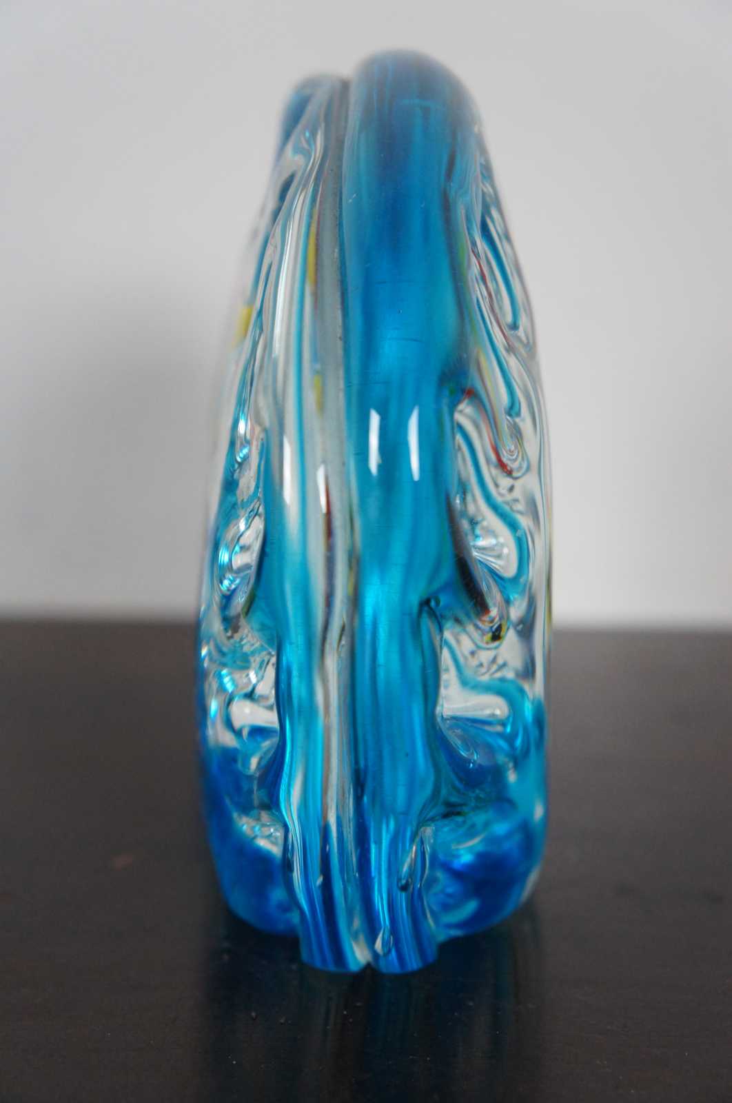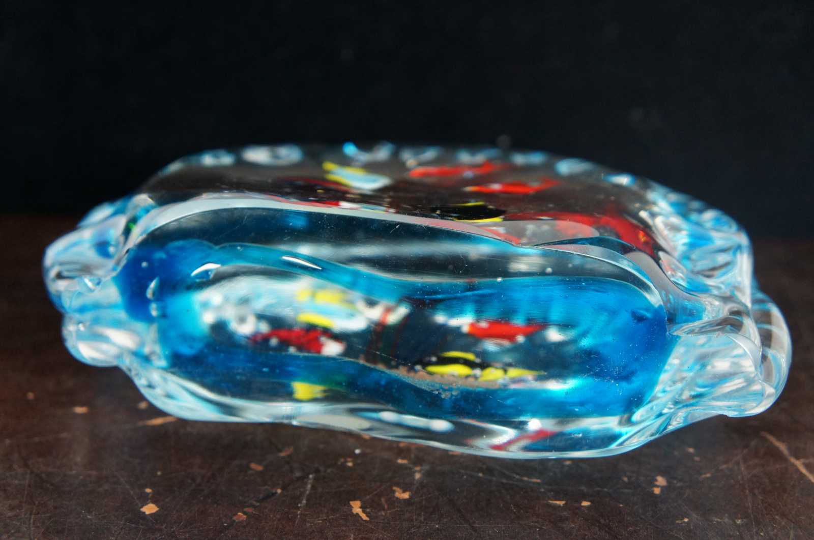Italian art glass fish bowl paperweight, made in Murano with five fish. With original sticker Made in Italy Murano Venezia.