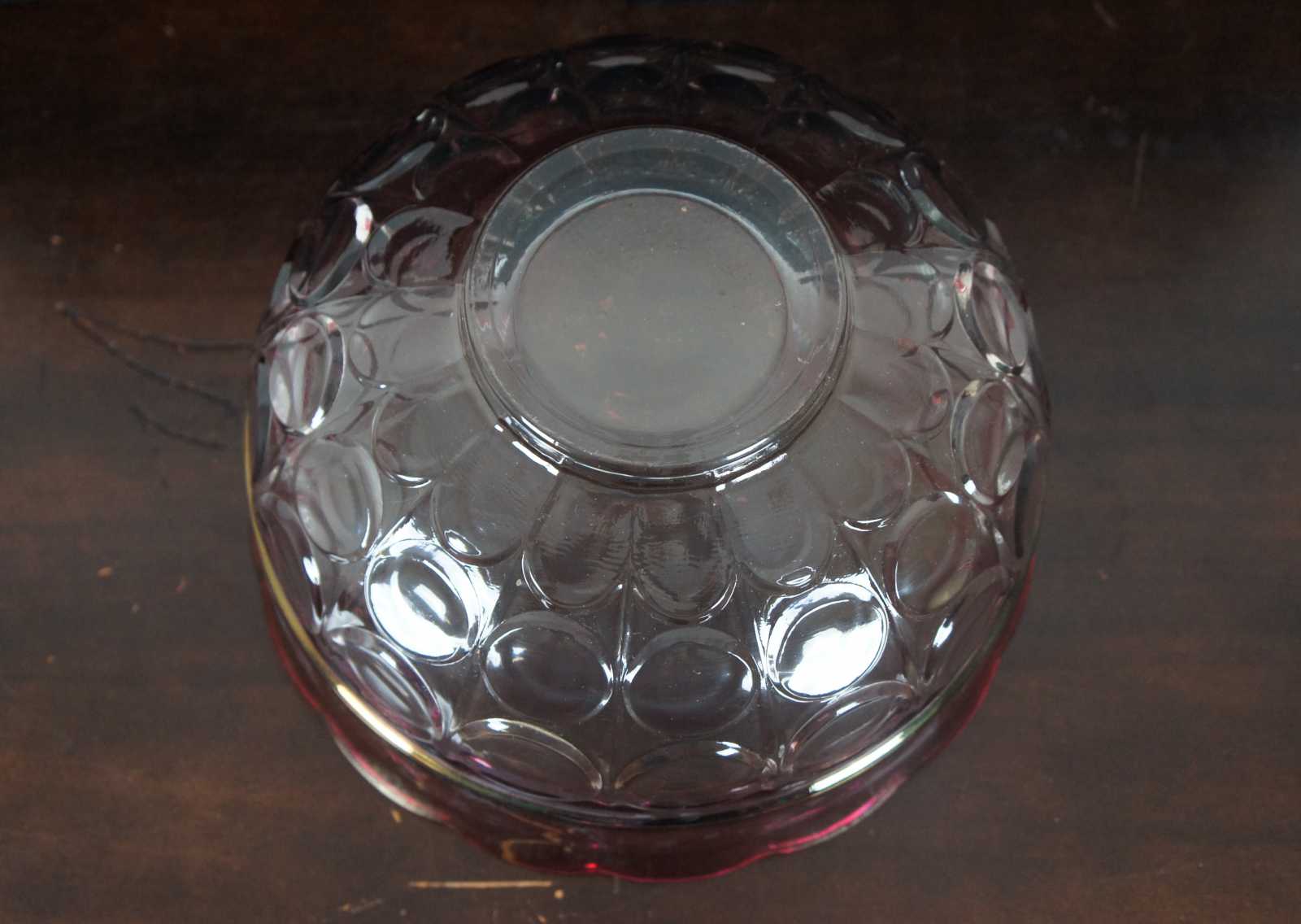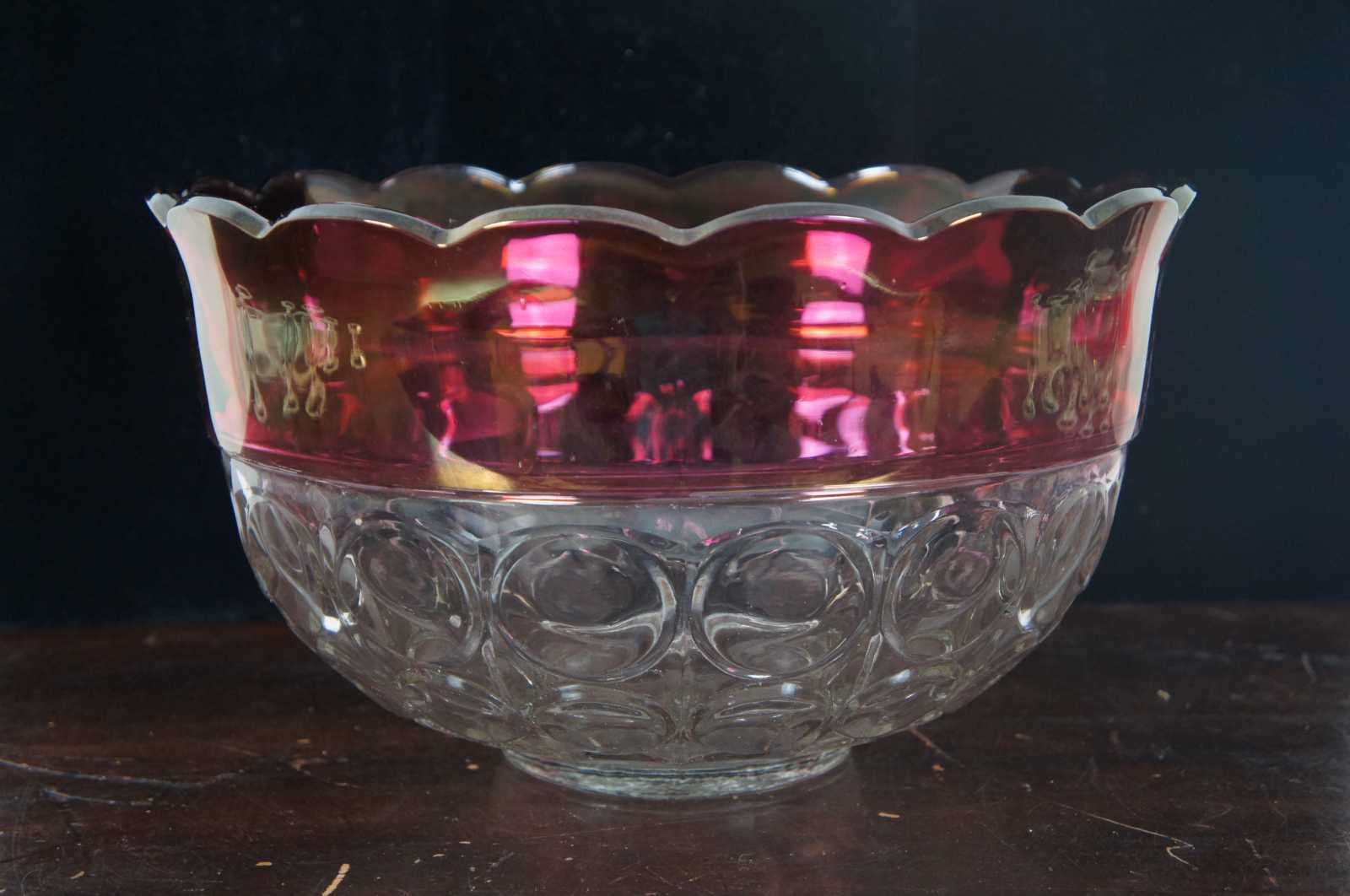 The Lexington 14 piece punch bowl, cups and ladle set by Indiana Glass in Ruby Banded thumbprint cranberry glass. Includes original box.