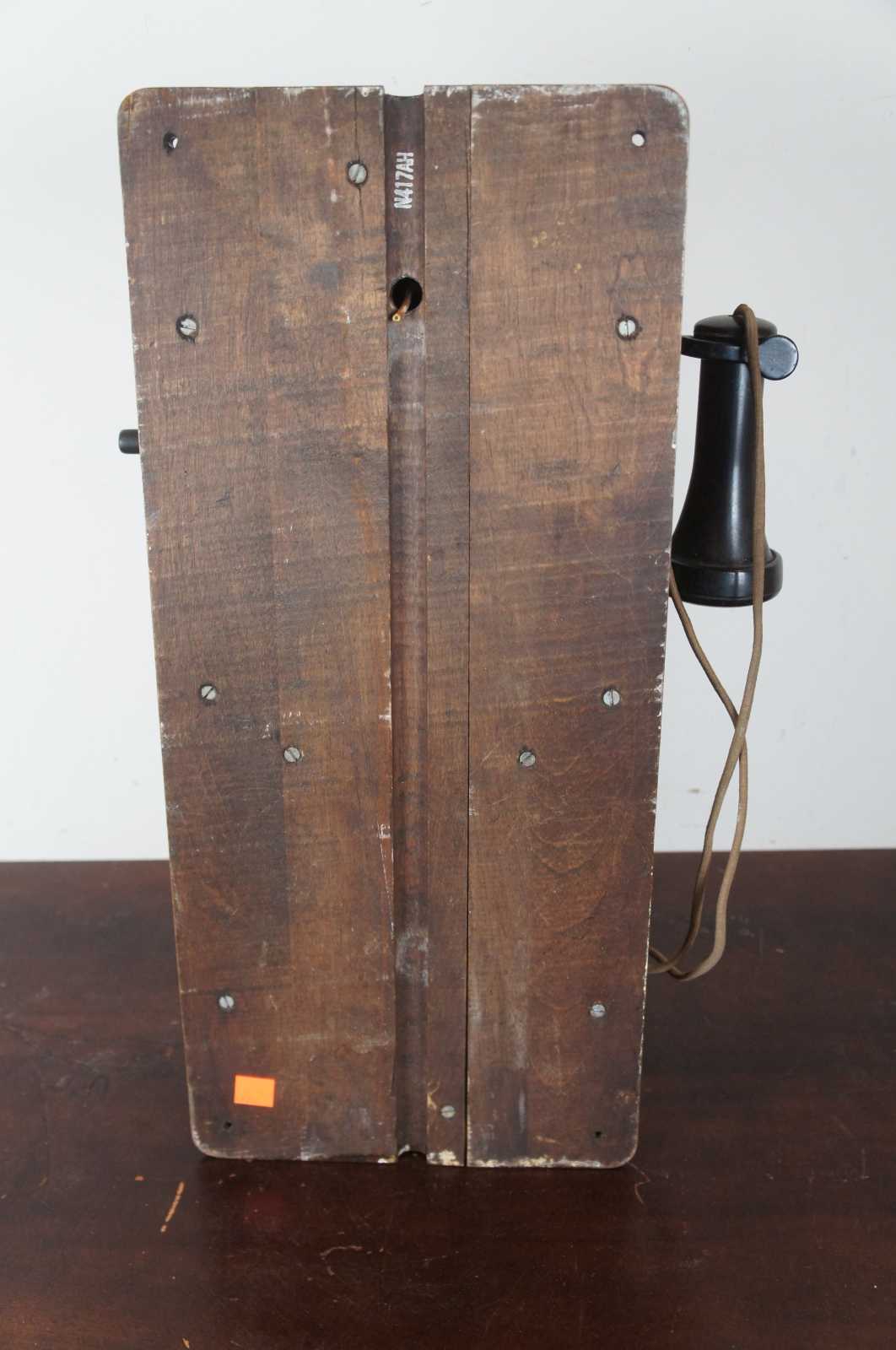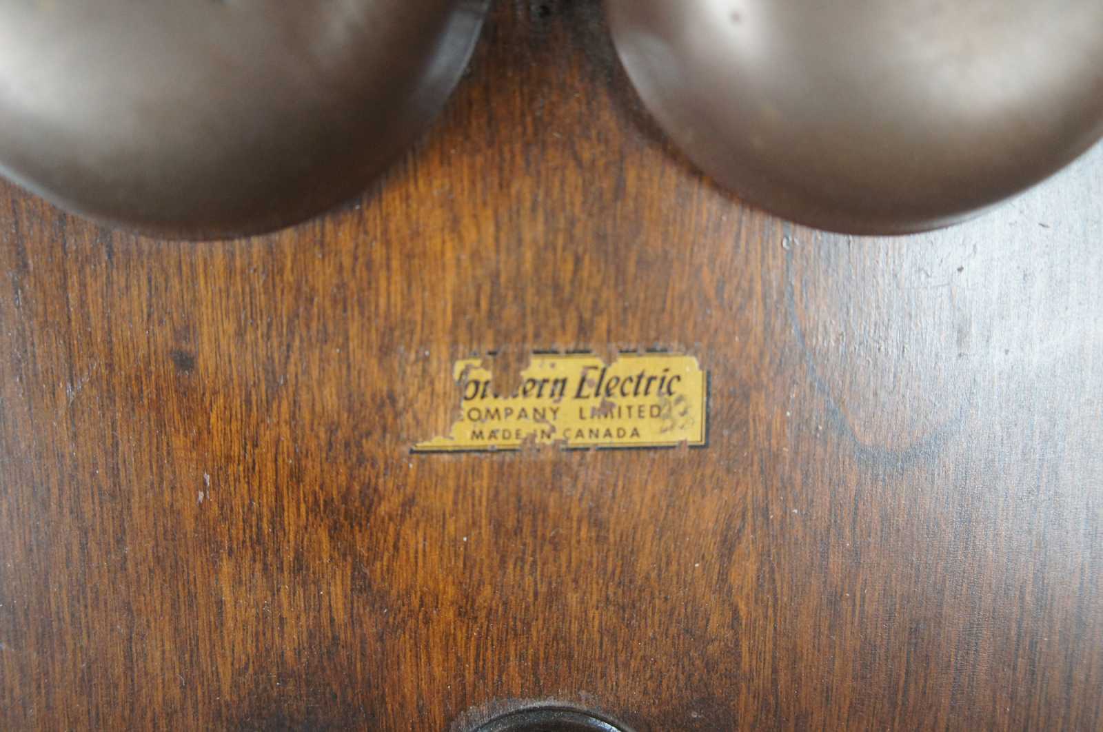 Antique Northern Electric Companyhand crank magneto telephone. Made of oak circa 1910s in Montreal Canada.