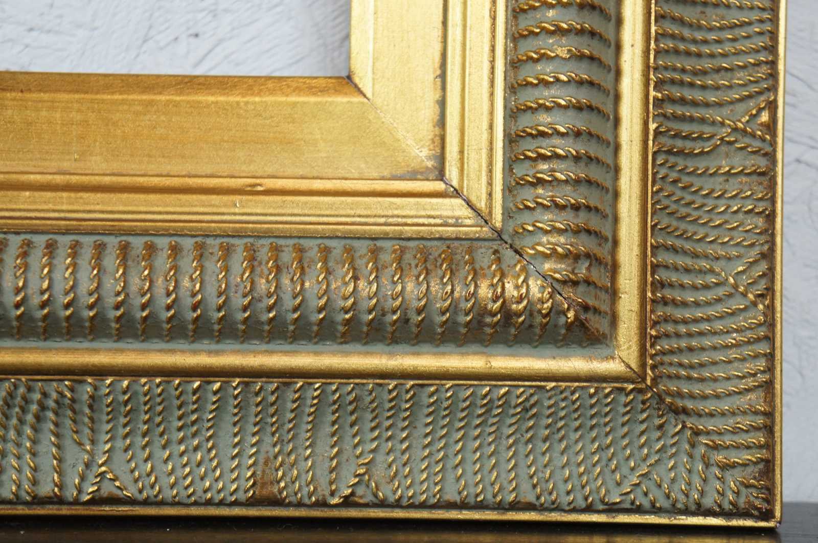 Vintage gold art or mirror frame with beveled inner edge and rope twist or tassel textured outer edge. Fits 12" x 16" artwork.