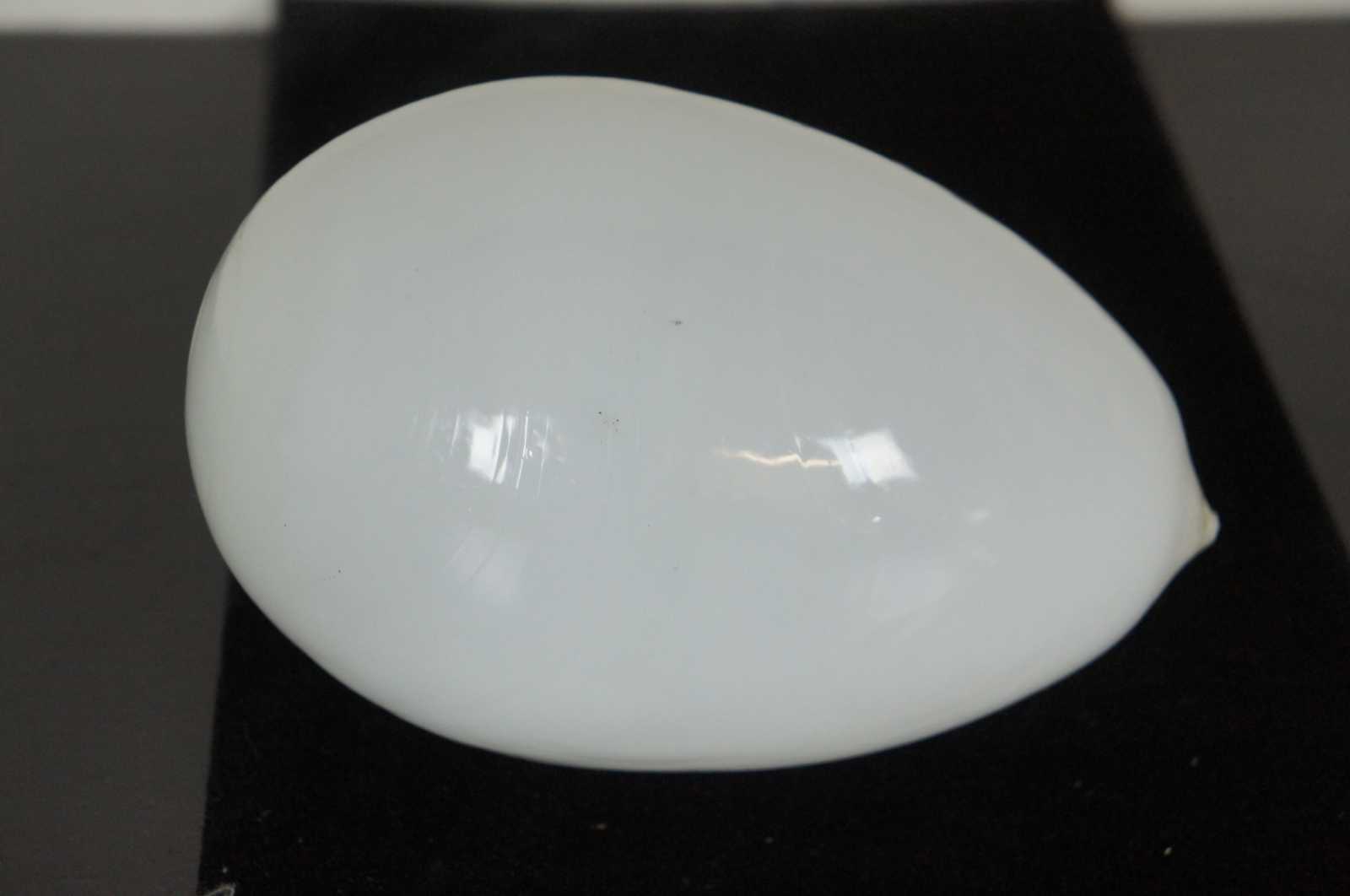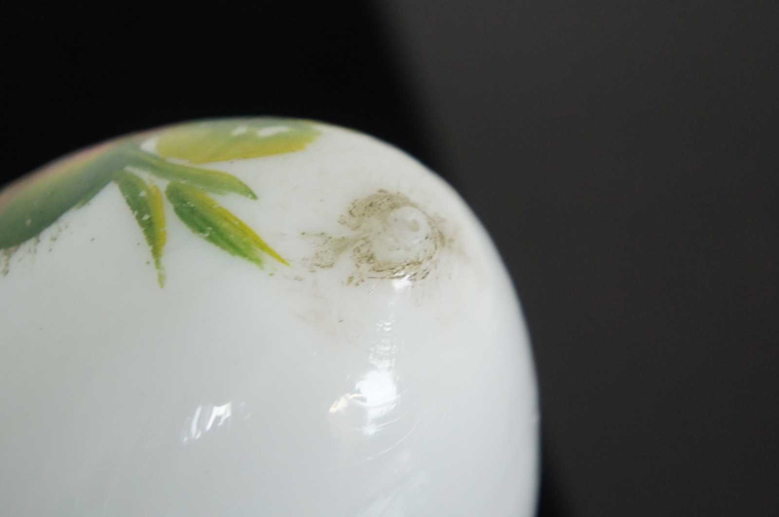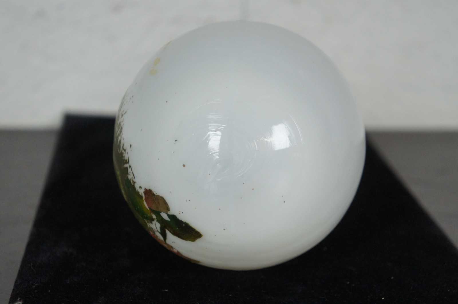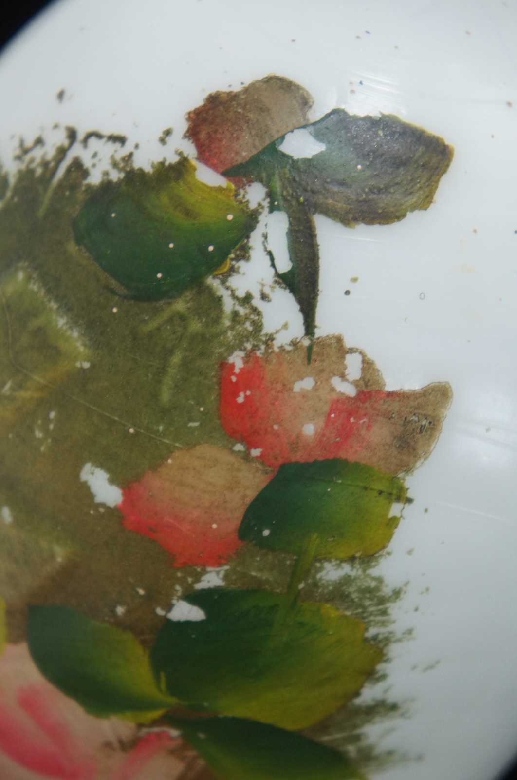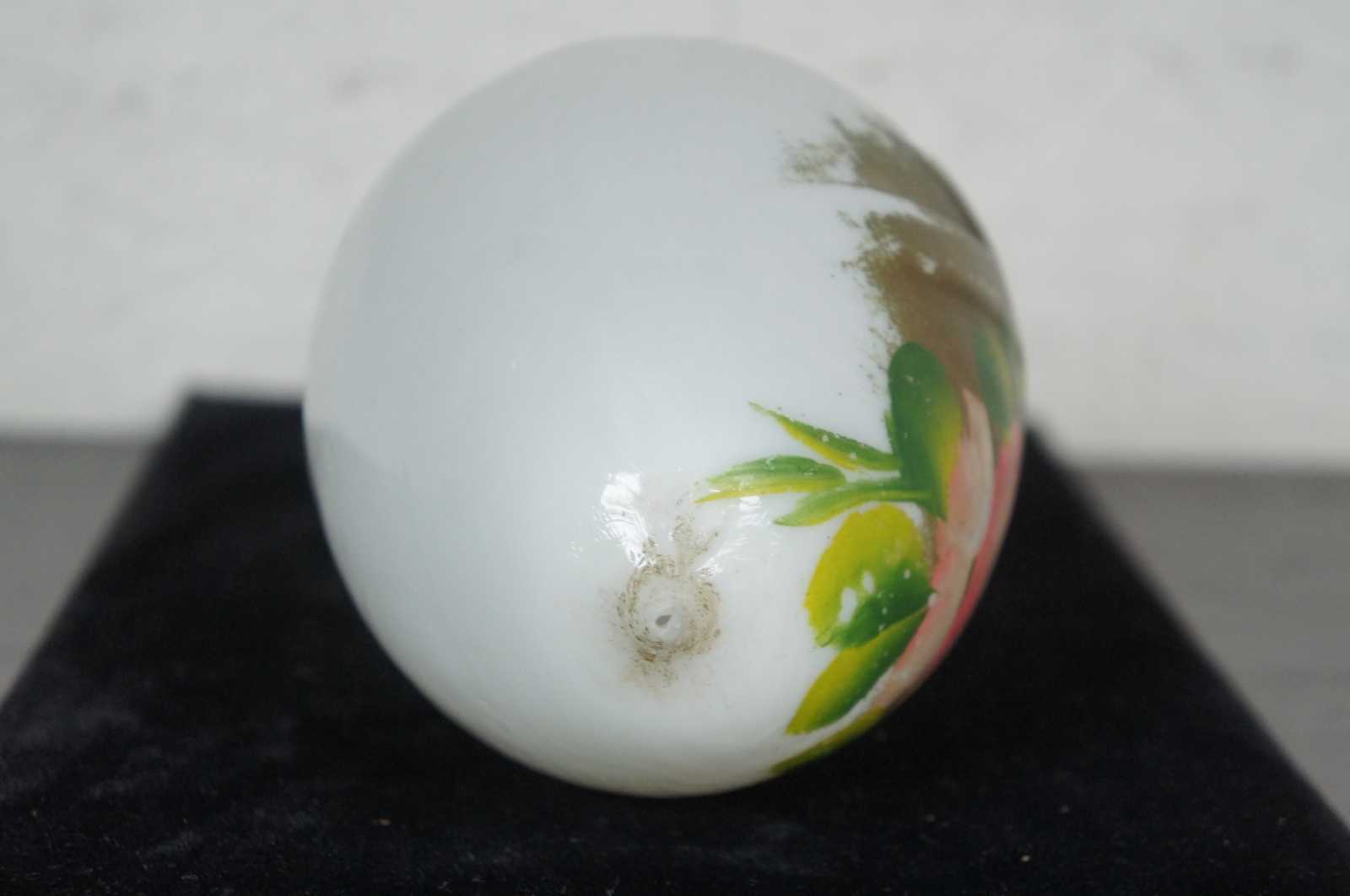 Antique Victorian hand blown and painted milk glass egg with a raised golden cross and pink roses and leaves.