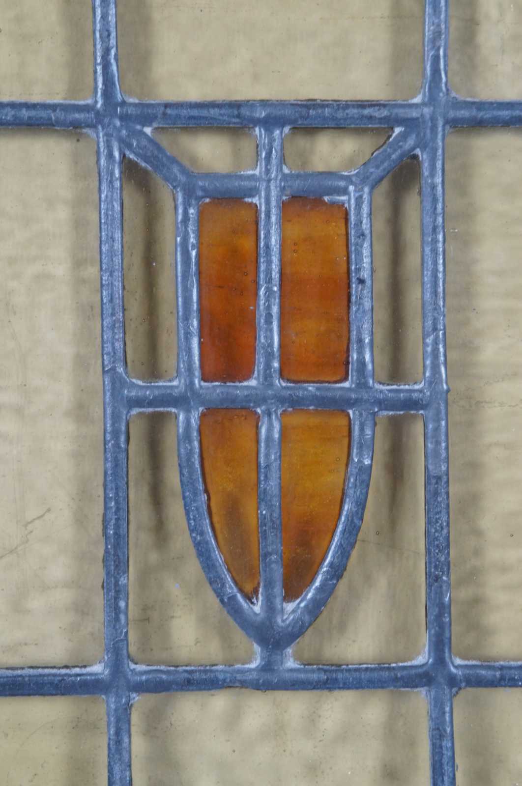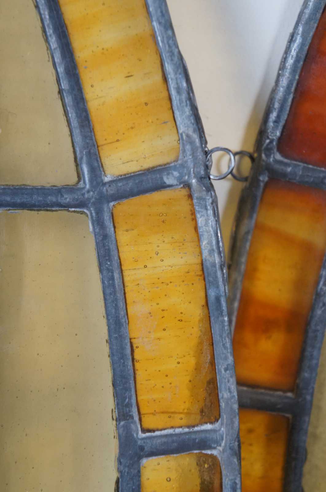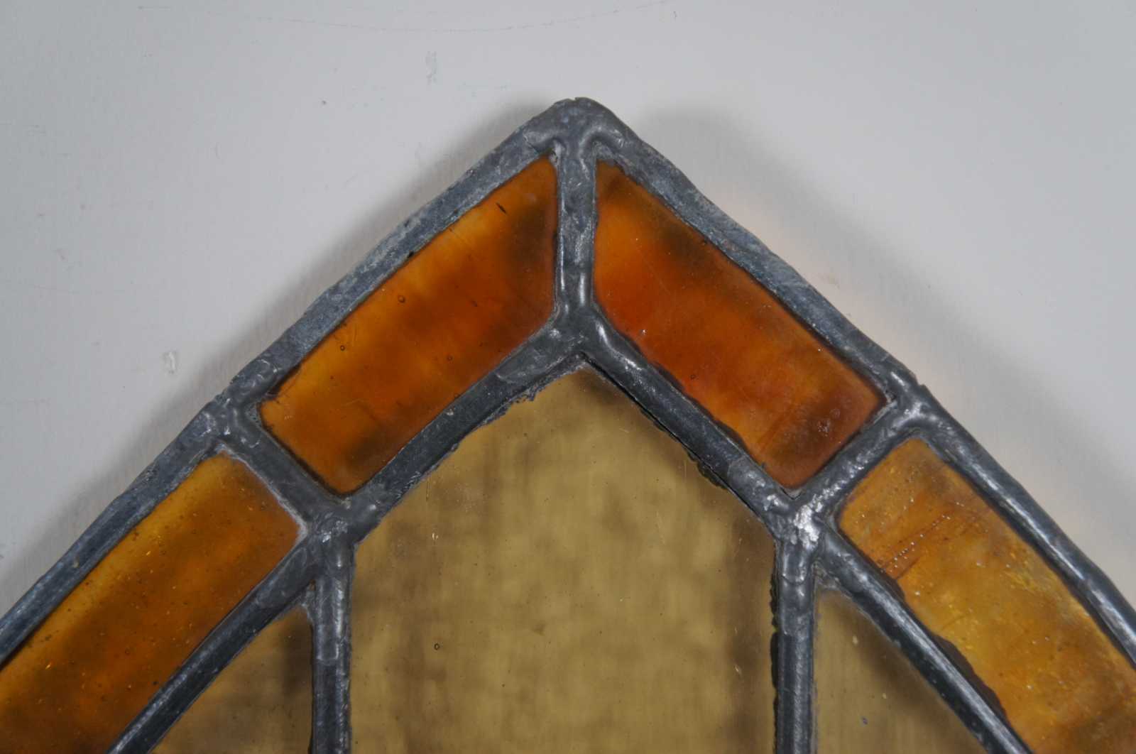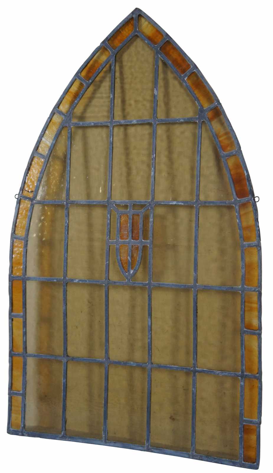 Antique Gothic/Victorian leaded stained glass arch shaped window panels in light and dark shades of amber slag glass. Architectural salvage/ reclaimed. 5 Available.