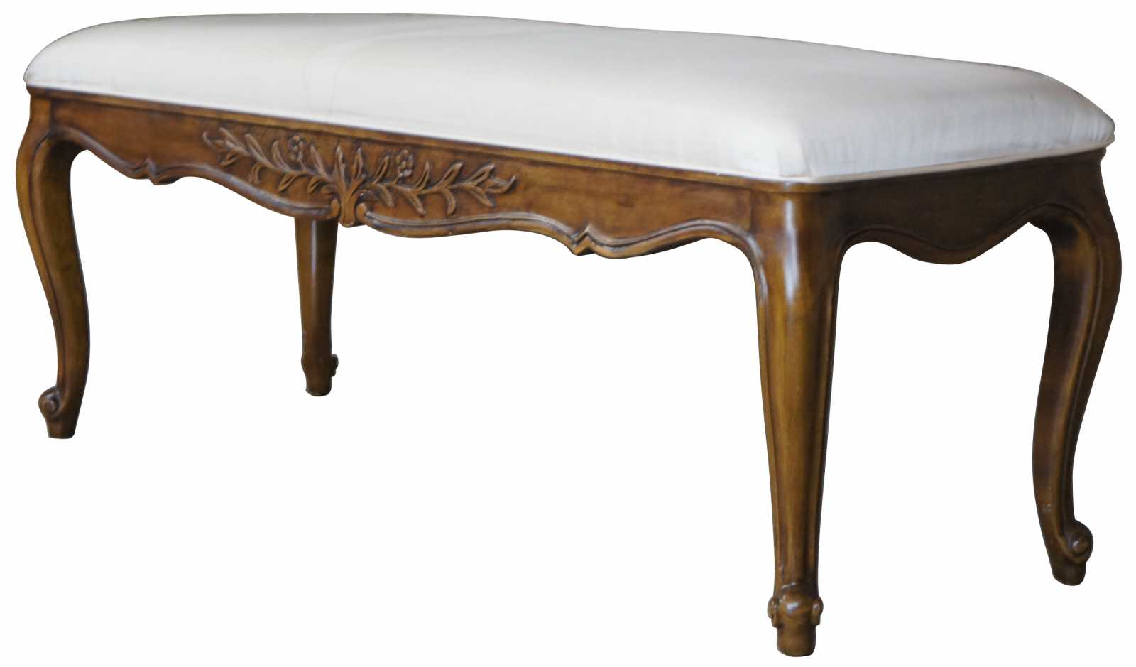 Late 20th century bench seat. Features a rectangular form with carved serpentine apron over cabriole legs