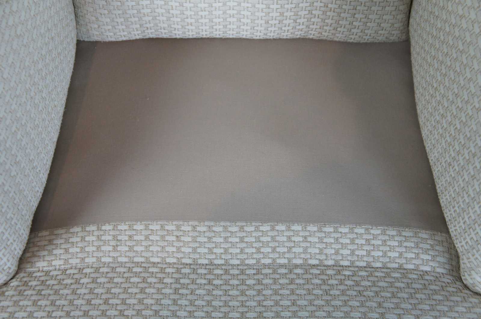 Vintage mid century modern library arm chair. Made of walnut with a high back and neutral geometric upholstery with tufted back.
