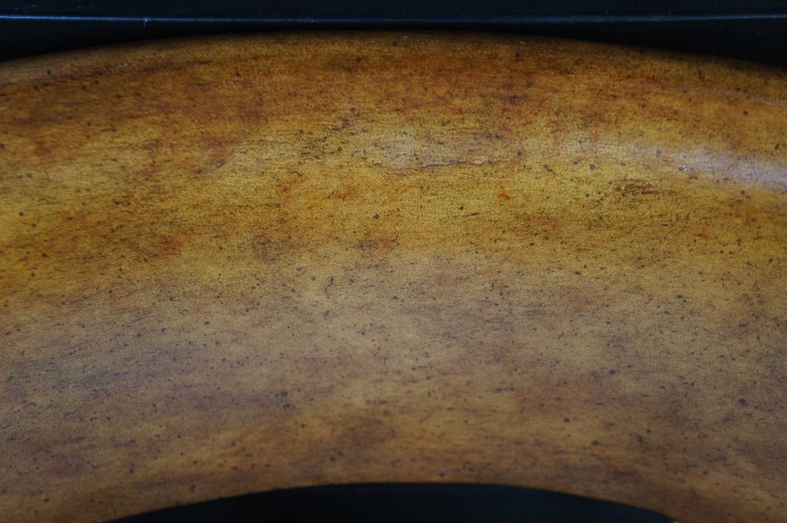 Good overall, Some small chips in finish, most notably along leg; stains to upholstery, see pictures