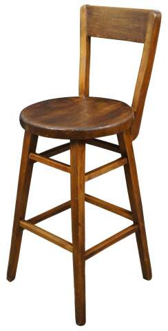 Antique country style oak counter or bar stool. Marked Rec Ins along the back of seat.