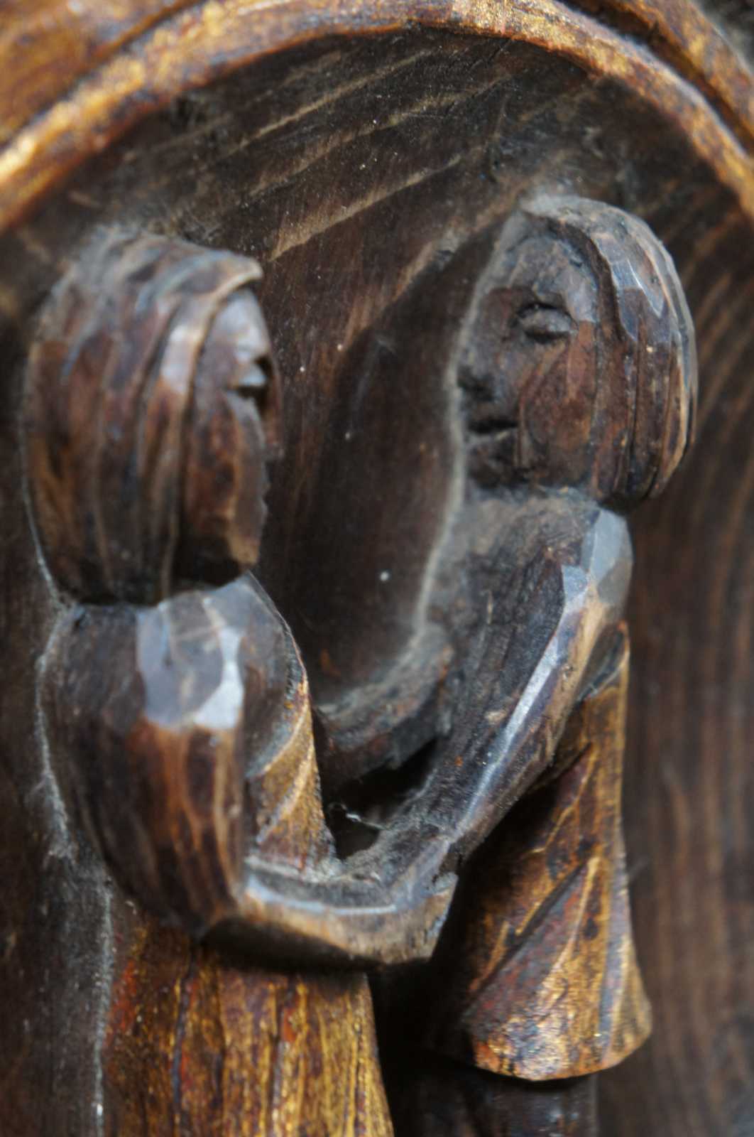 Made in Spain, vintage hand carved wooden Zodiac wall plaque featuring four Greek astrological symbols – Taurus the Bull / Ox, Gemini the Twins, Cancer or Scorpio the Scorpion / Crab / Lobster, and Leo the Lion.