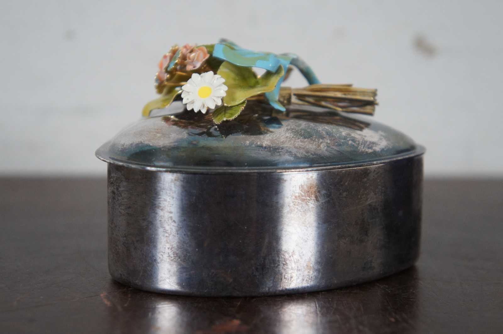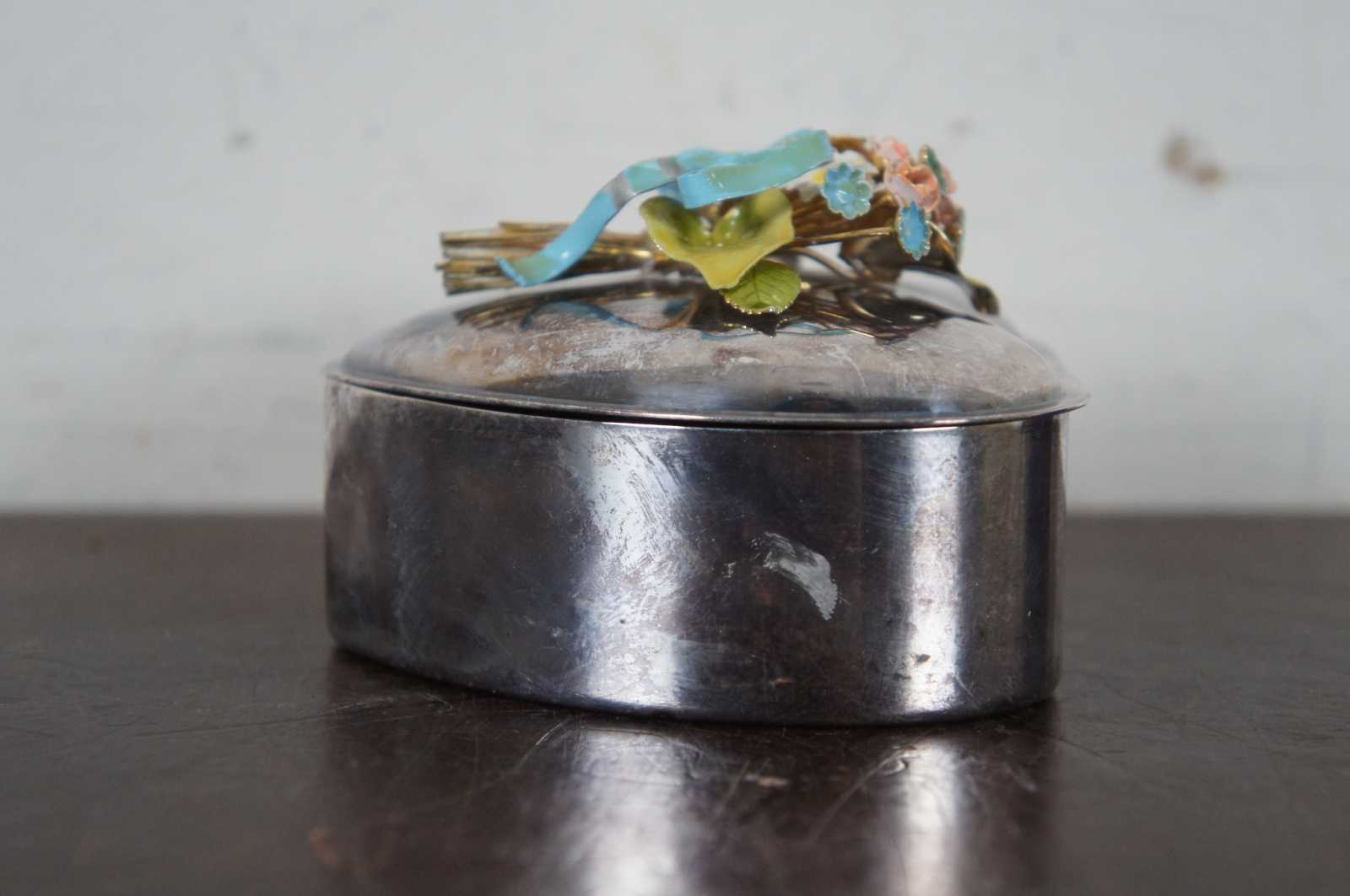 Gorham Silver Plated Heart Trinket Keepsake Enameled Box Flower Bouquet YC88 3"