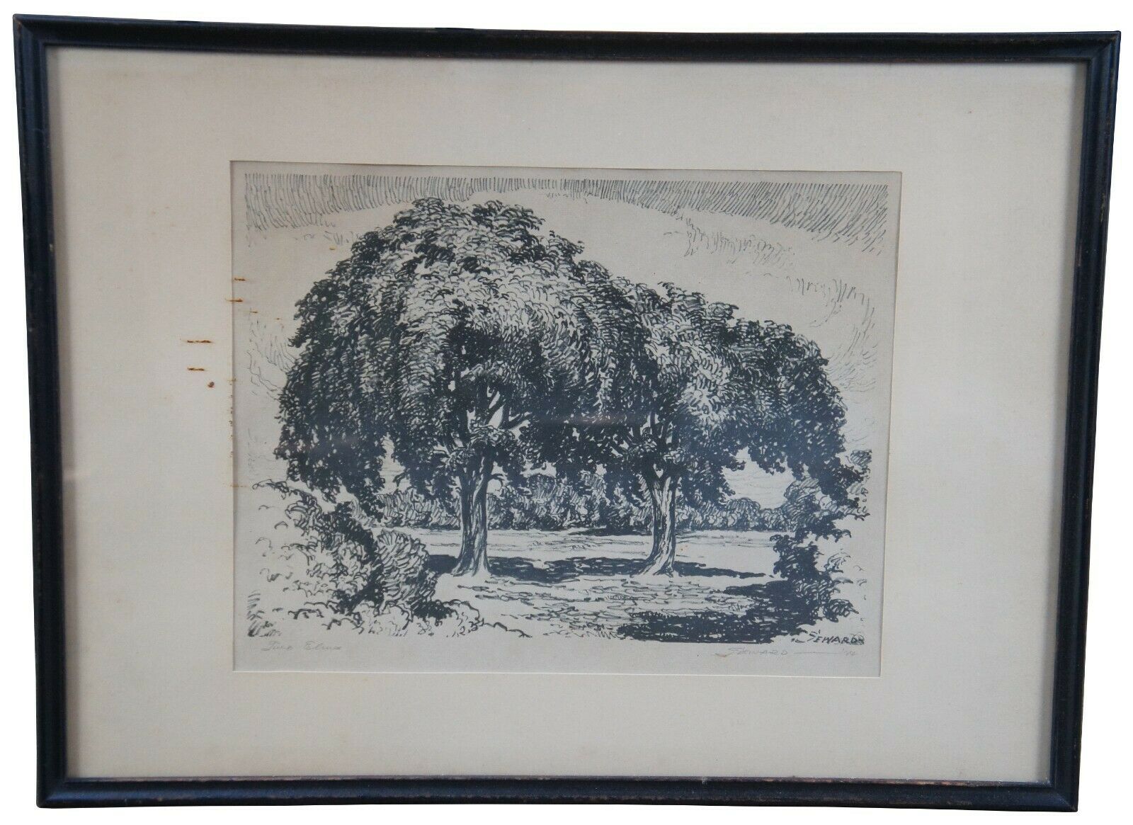 1924 Antique Coy Avon Seward Two Elms Tree Lithograph Framed Print 20
