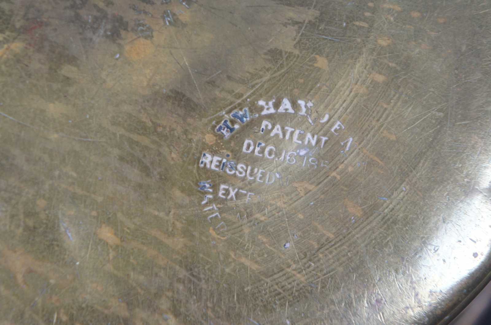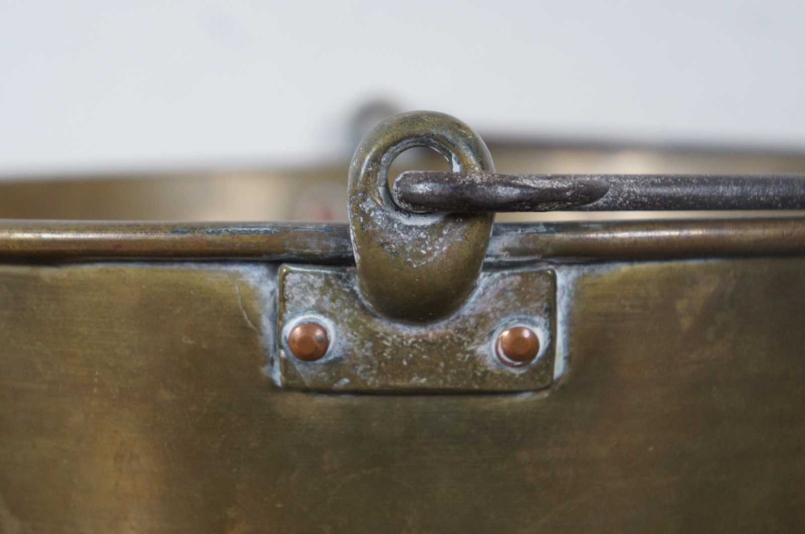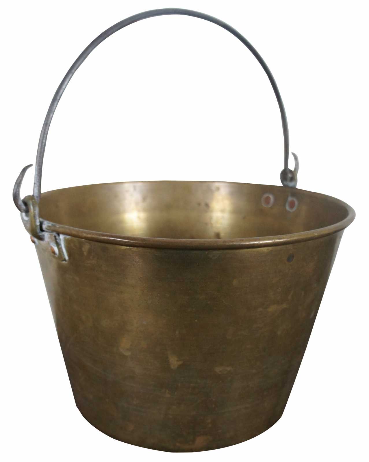 Antique hand spun brass bucket with rat tail handle by Hiram W. Hayden. Patented in 1851
