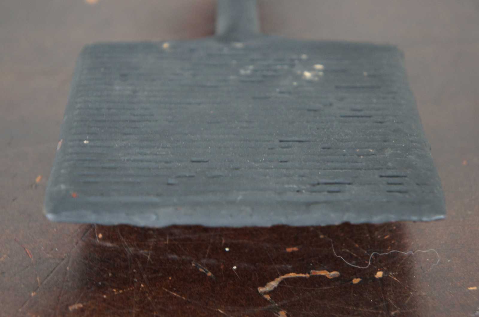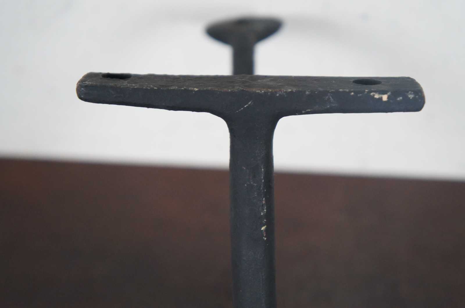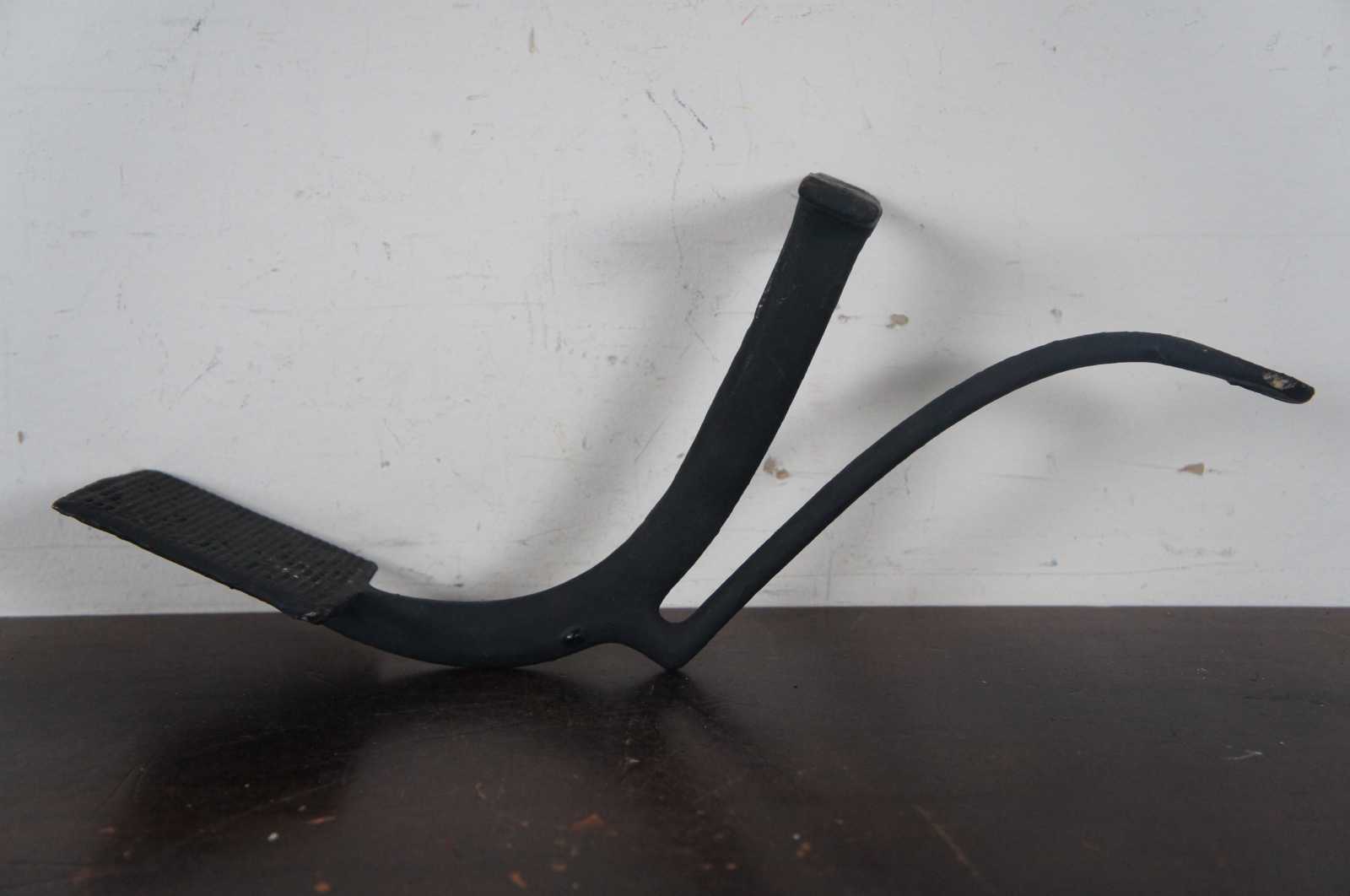 Single antique square cat iron carriage step with two arm support a ridged surface.