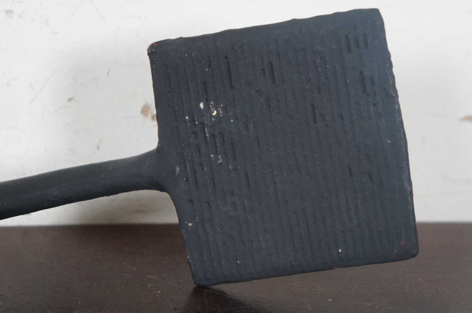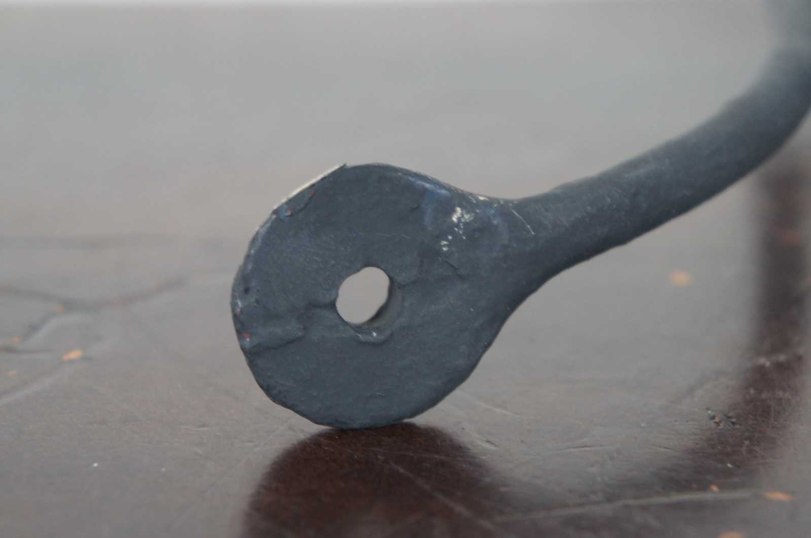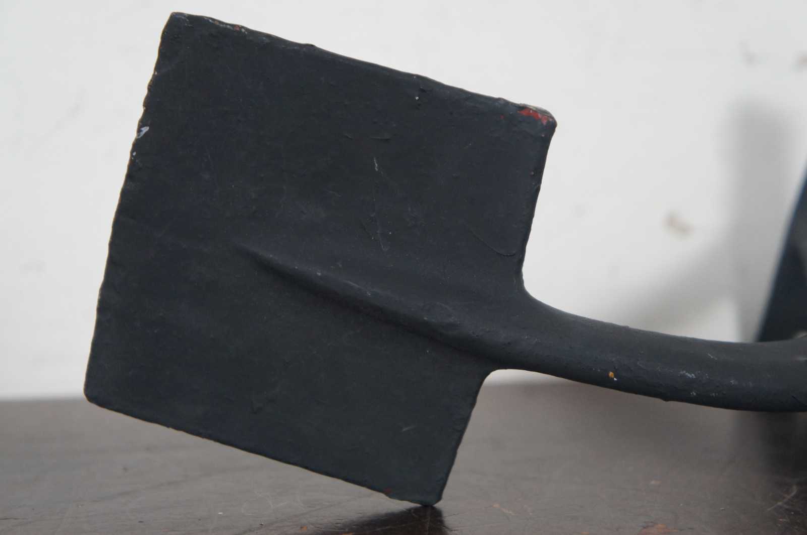 Single antique square cat iron carriage step with two arm support a ridged surface.