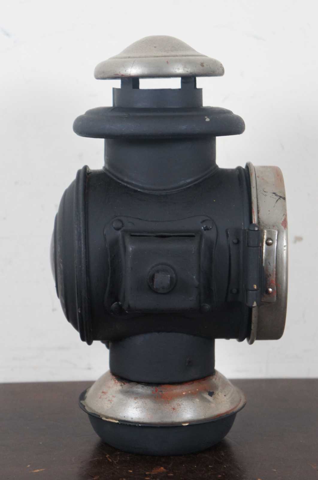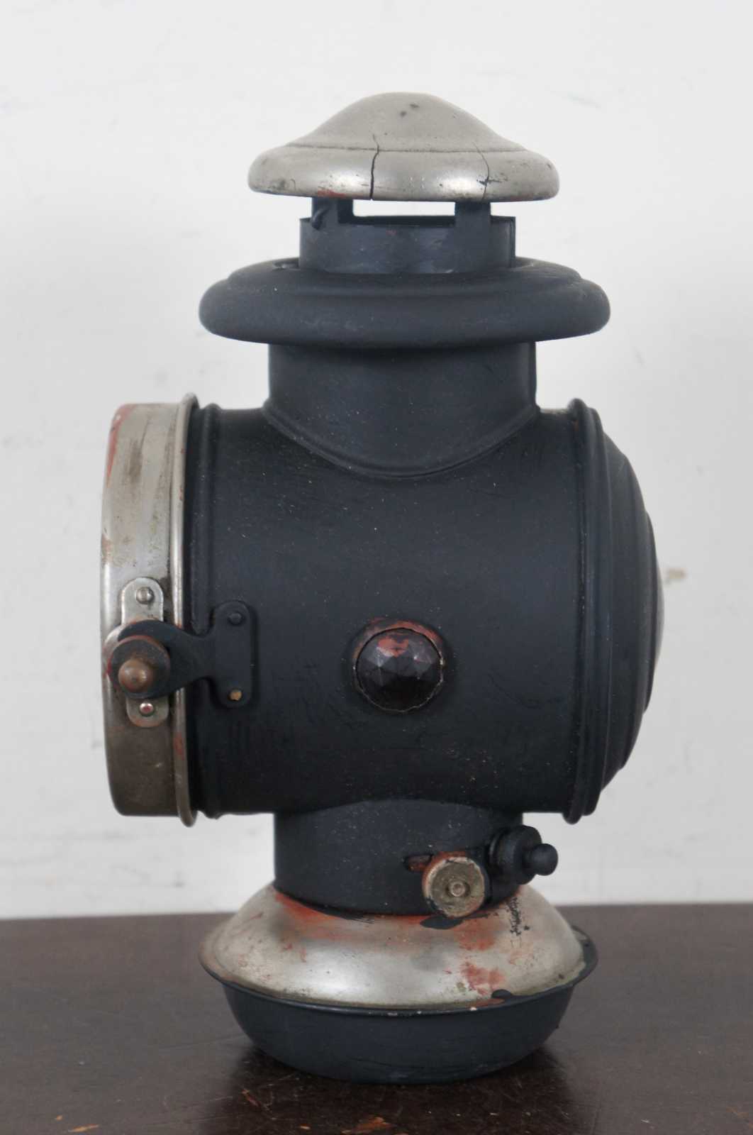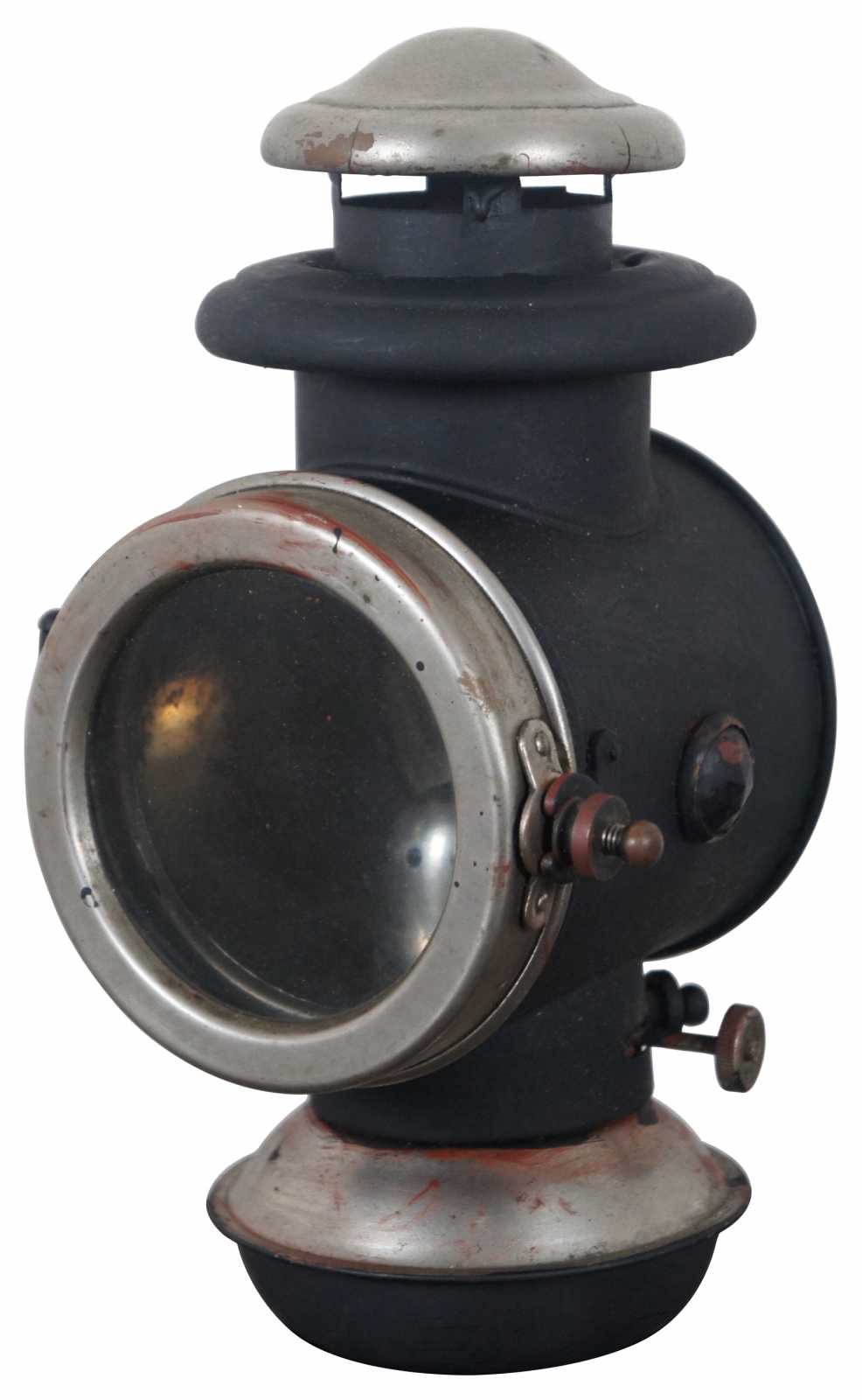 Antique early 20th century oil lit carriage lantern or automobile headlight.