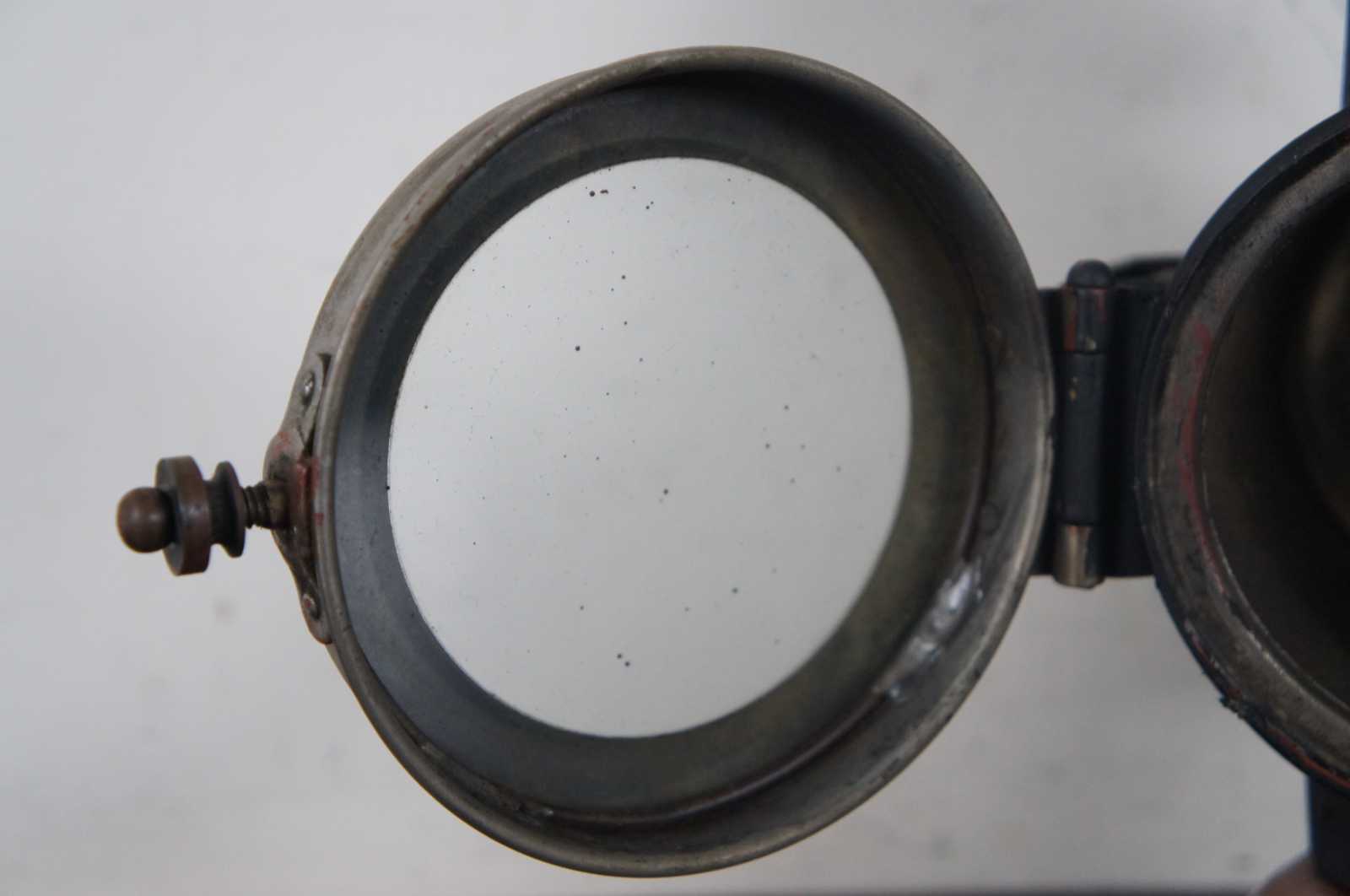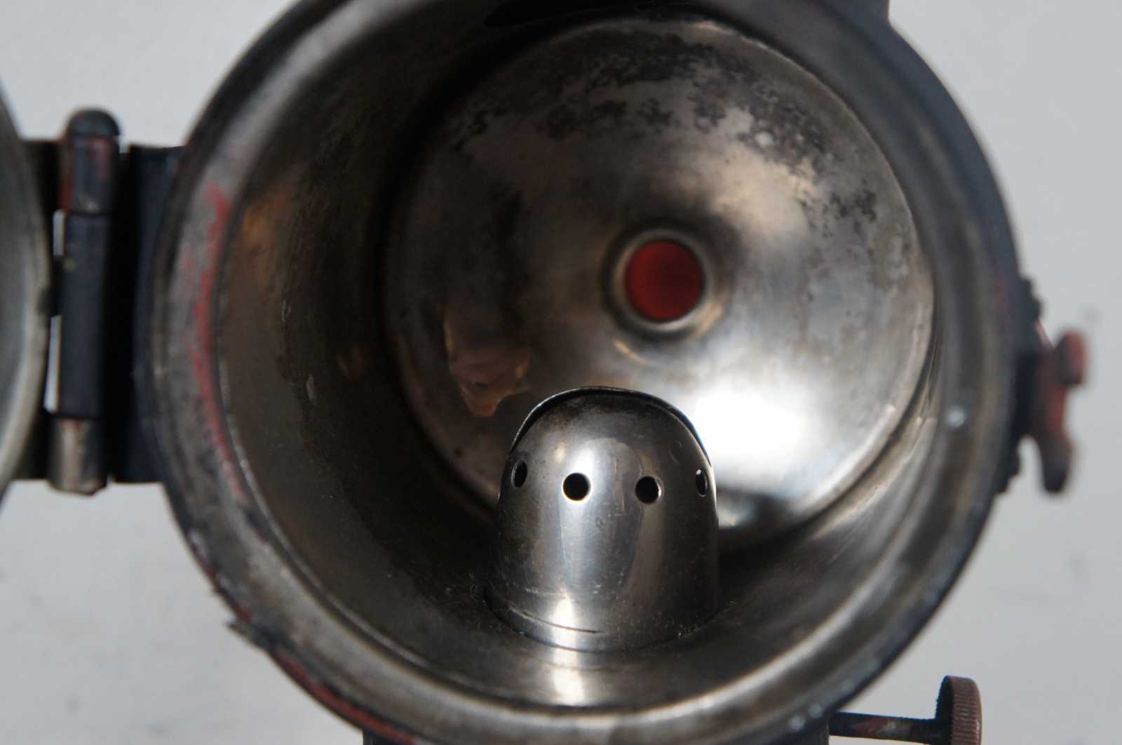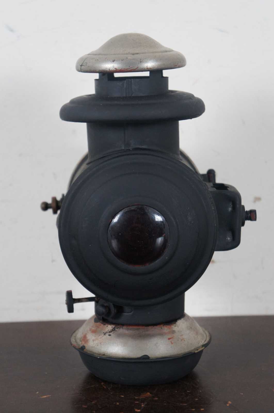 Antique early 20th century oil lit carriage lantern or automobile headlight.