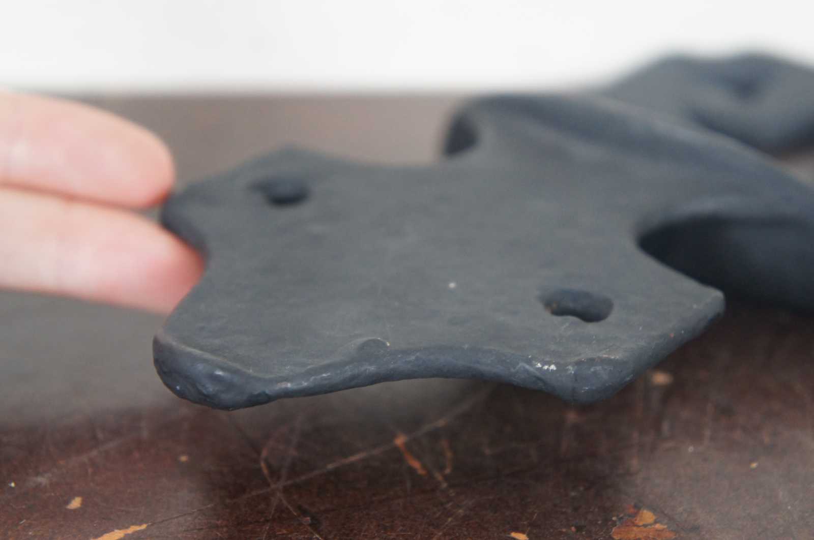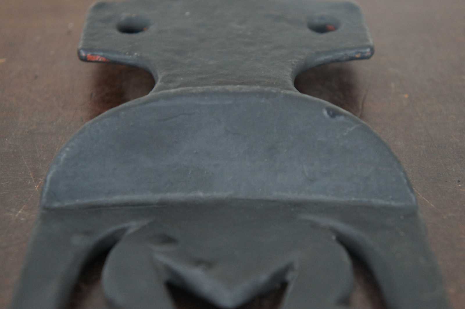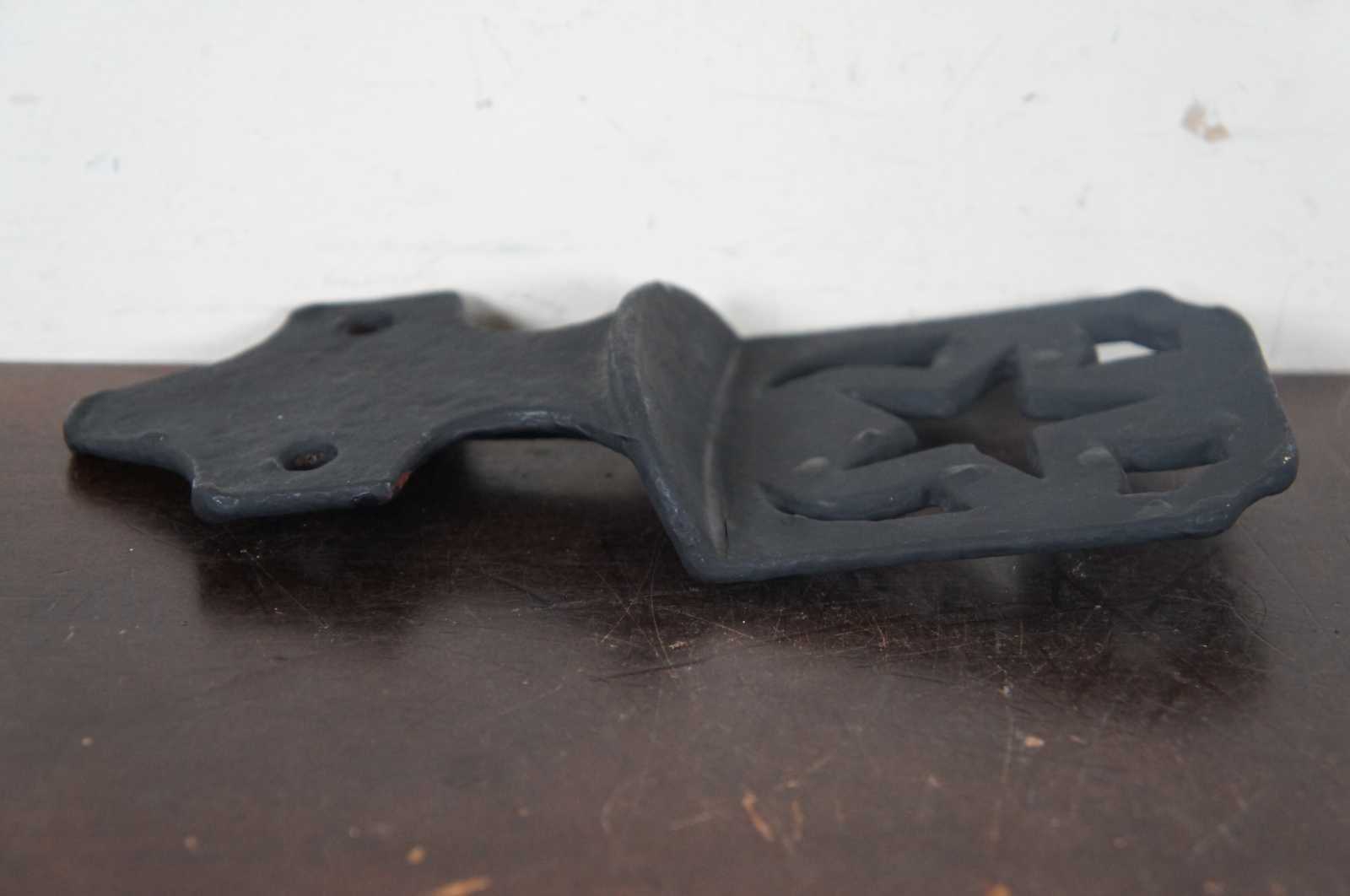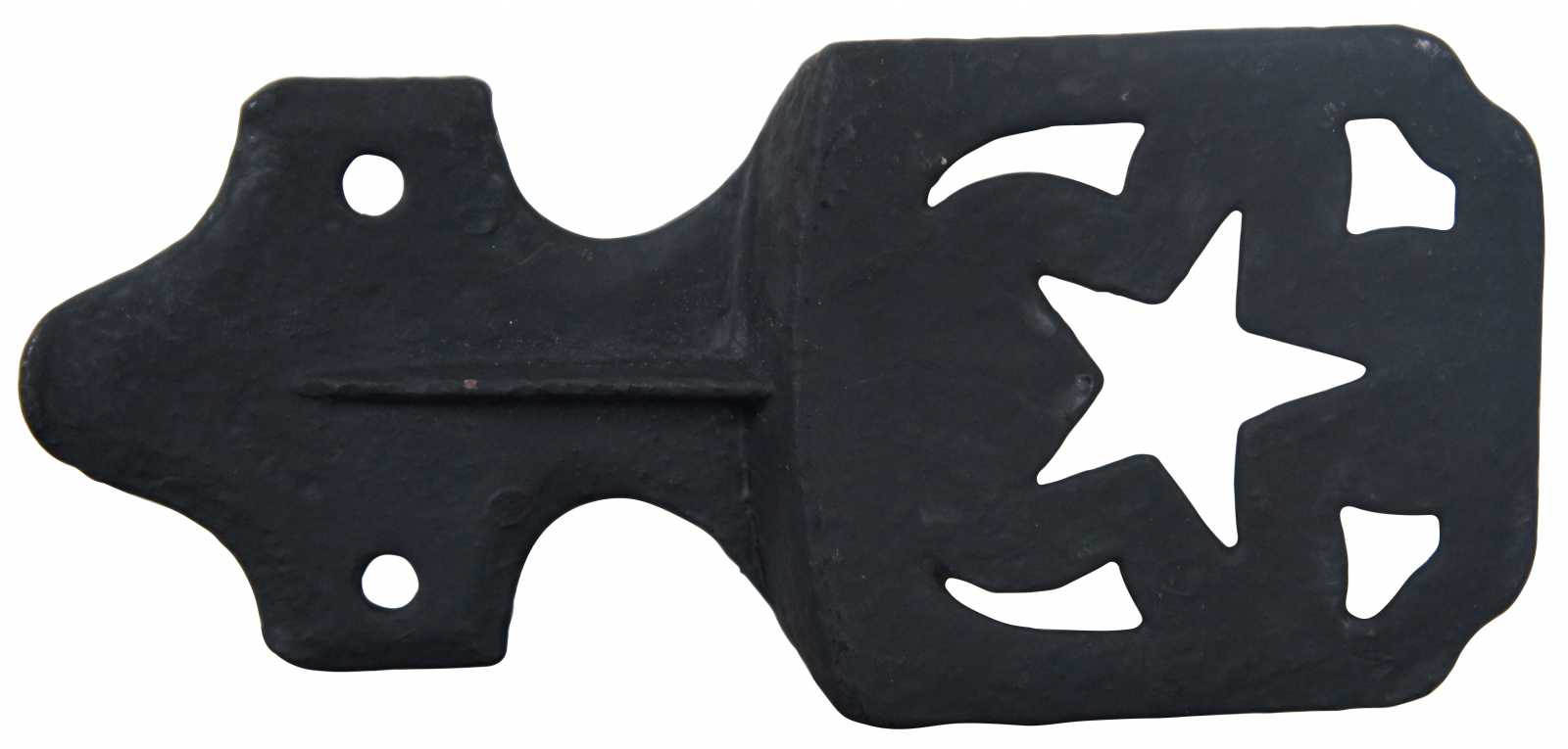 Single antique square cast iron carriage step with a simple pierced geometric design surrounding a five pointed star.