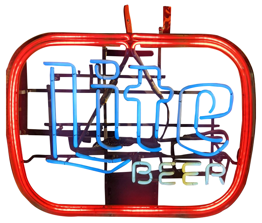 Vintage 1987 Miller Light neon beer sign. Made in Maspeth NY by Universal Electric Sign Co for Miller Brewing Company of Milwaukee Wisconsin.