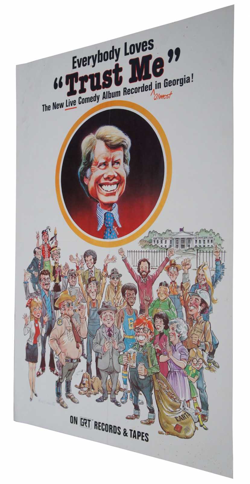 Vintage 1977 promotional poster for Everybody Loves “Trust Me” a comedy album by Hans Petersen in which he impersonates President Jimmy Carter. GRT Records & Tapes.
