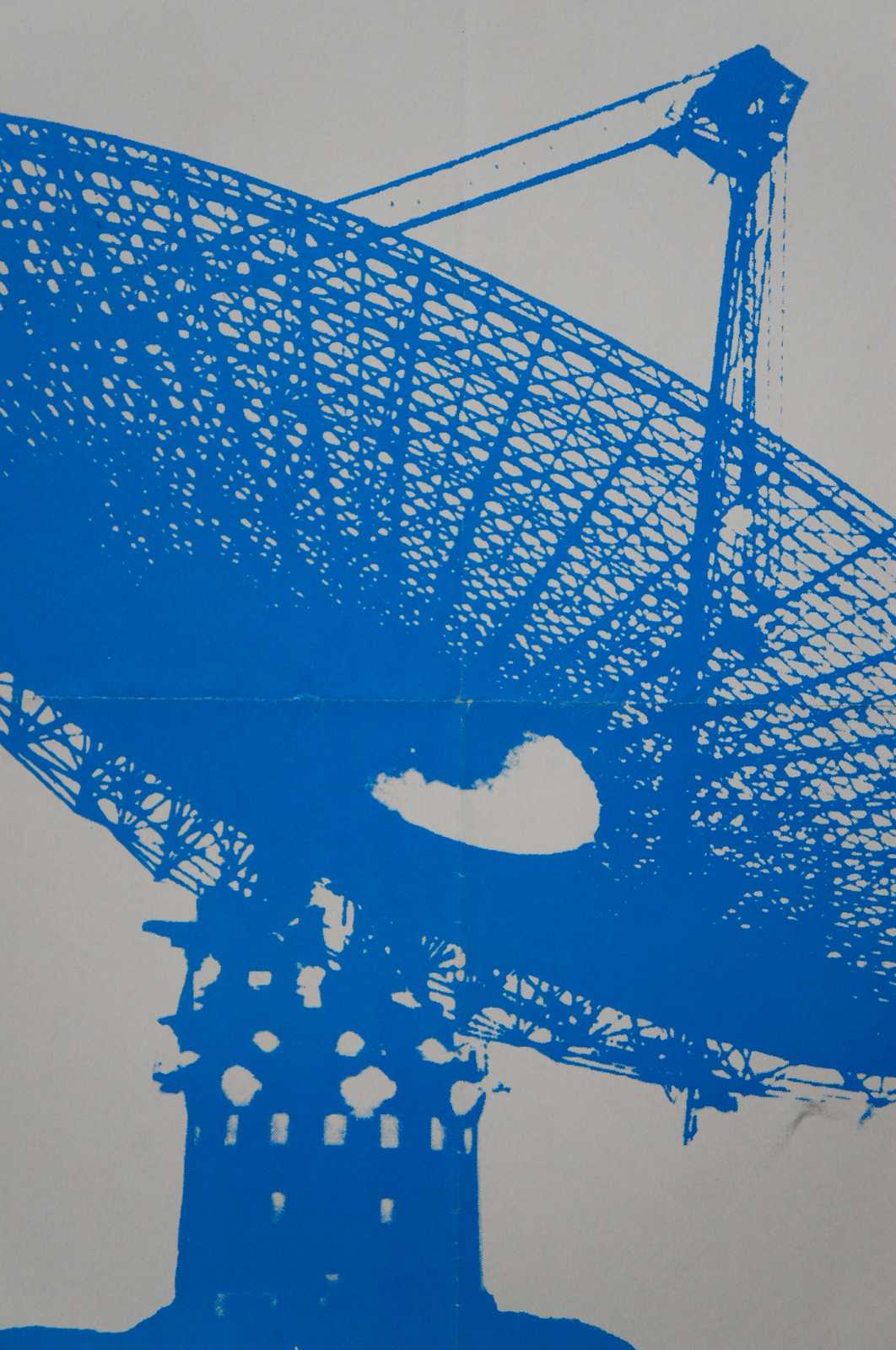 Radio / communications / telescope antenna astronomy dish turned skyward in Andy Warhol style.