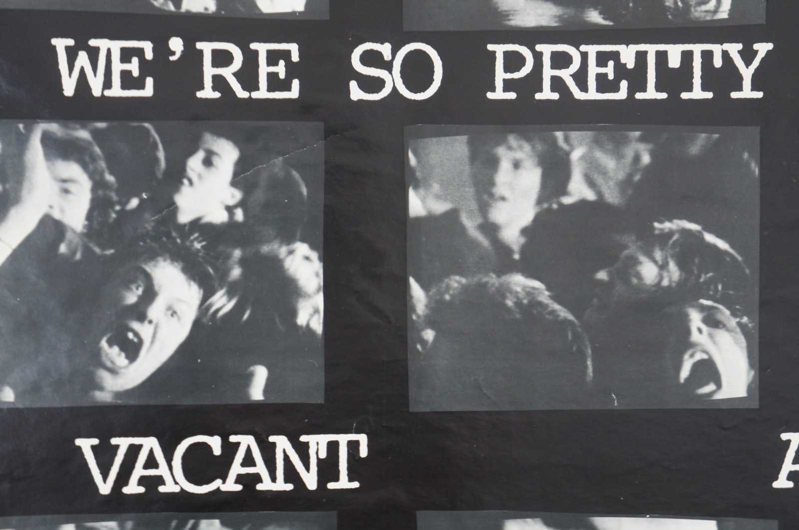 Vintage 1977 “Dance to the Sex Pistols” Pretty Vacant new single promotional poster. ""Pretty Vacant"" is a song by the English punk rock band the Sex Pistols. It was released on 1 July 1977 as the band's third single and was later featured on their only album, Never Mind the Bollocks, Here's the Sex Pistols, released during that same year. The song reached No. 6 on the UK Singles Chart and marked the band's first appearance on the British chart music TV programme Top of the Pops. The song gained attention for vocalist John Lydon's phrasing of the word ""vacant"", emphasising the last syllable to sound like the vulgar word cunt.[2][3] According to bassist Glen Matlock, the song's main riff was inspired by hearing ""SOS"" by ABBA.[4] The B-side of the single was a cover of the Stooges' ""No Fun"", which the band played on the spot without a proper rehearsal. It was taken from demo sessions recorded by producer Dave Goodman.