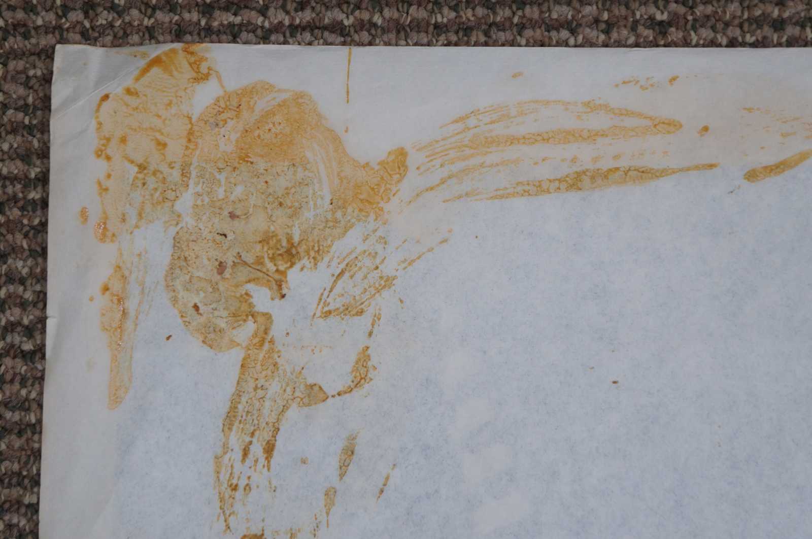 Good Overall - Uneven discoloration/glue residue on reverse; pinholes; some wear to edges; see pictures