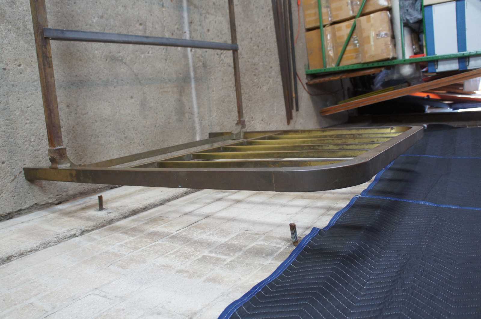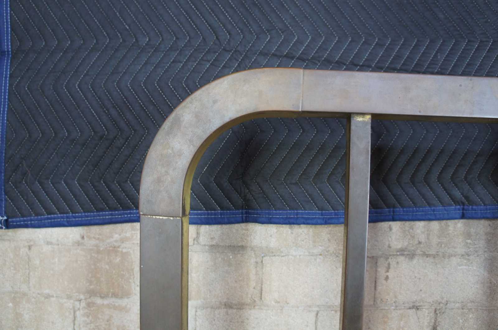 Antique brass and iron bed frame. Features square cut posts and turned corners.