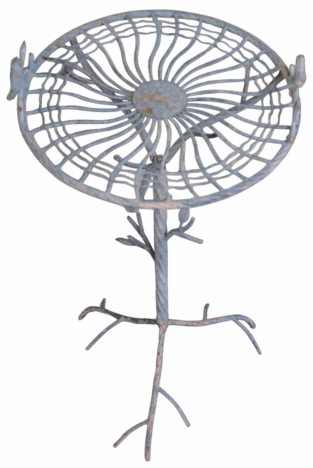 Vintage twisted iron fern stand. Features a twig shape with branches and a round sunburst top.