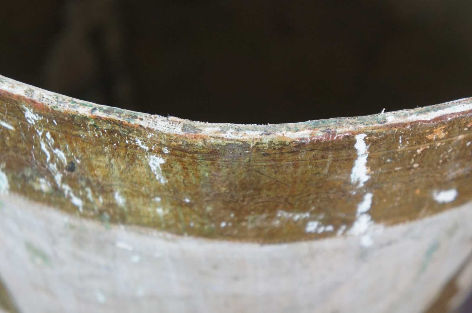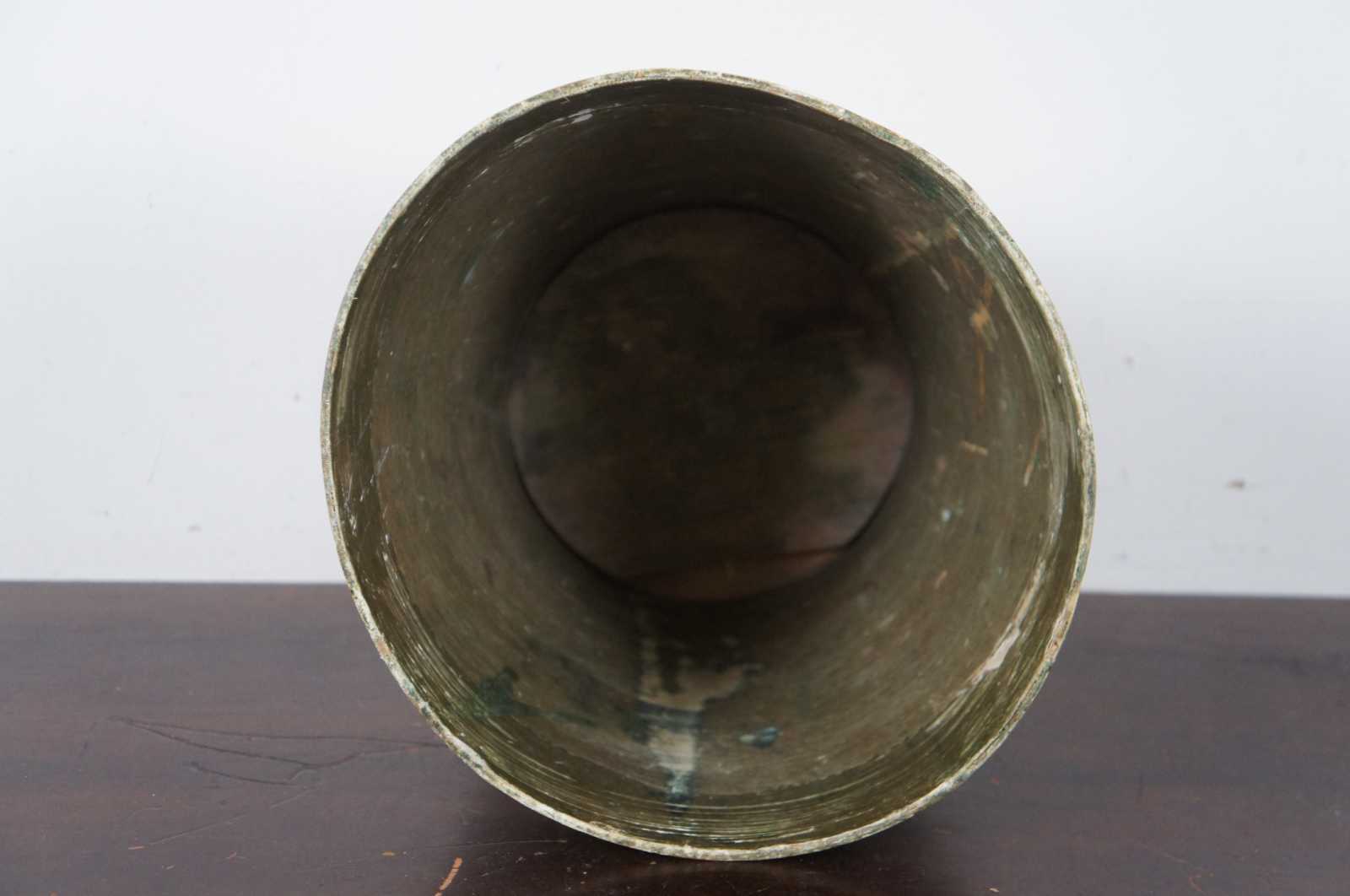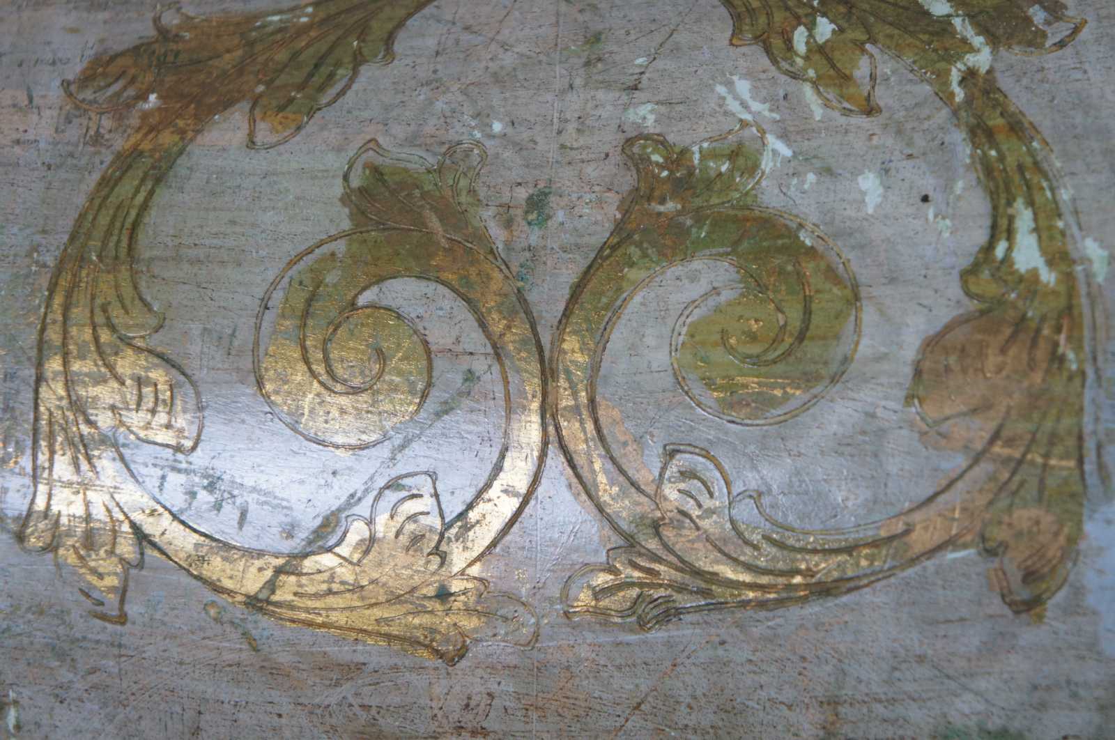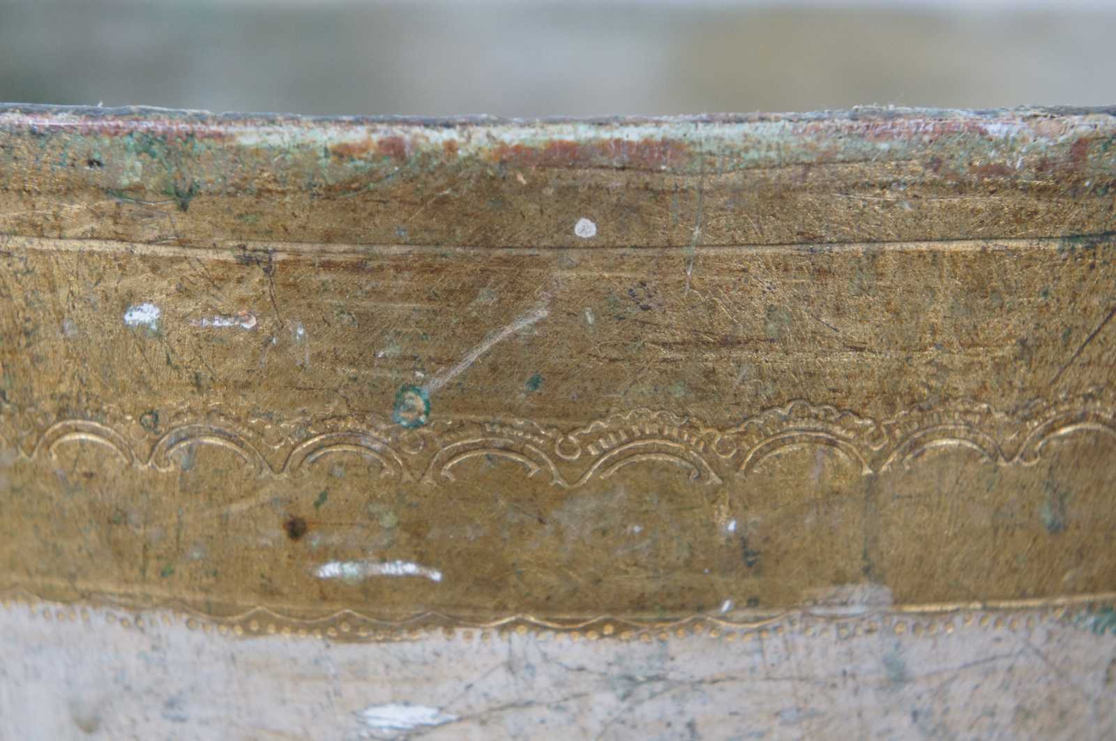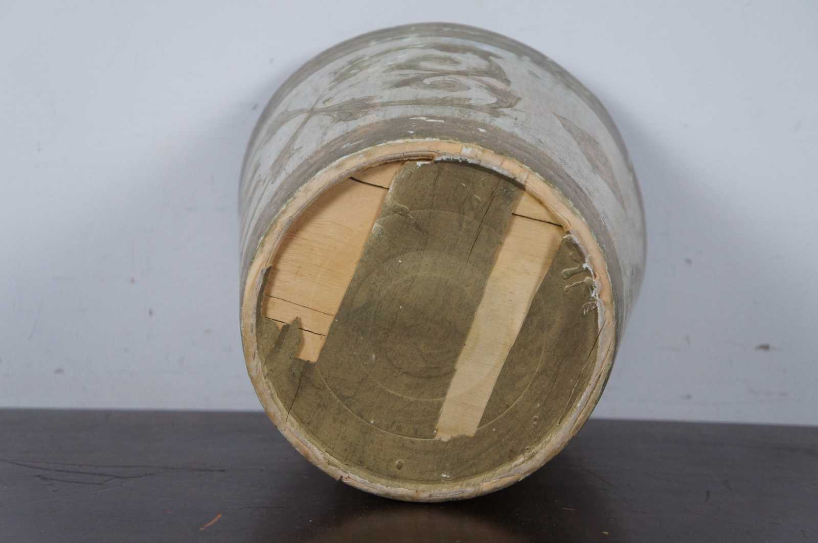 Vintage round white and gold painted Italian Florentine wood waste basket.