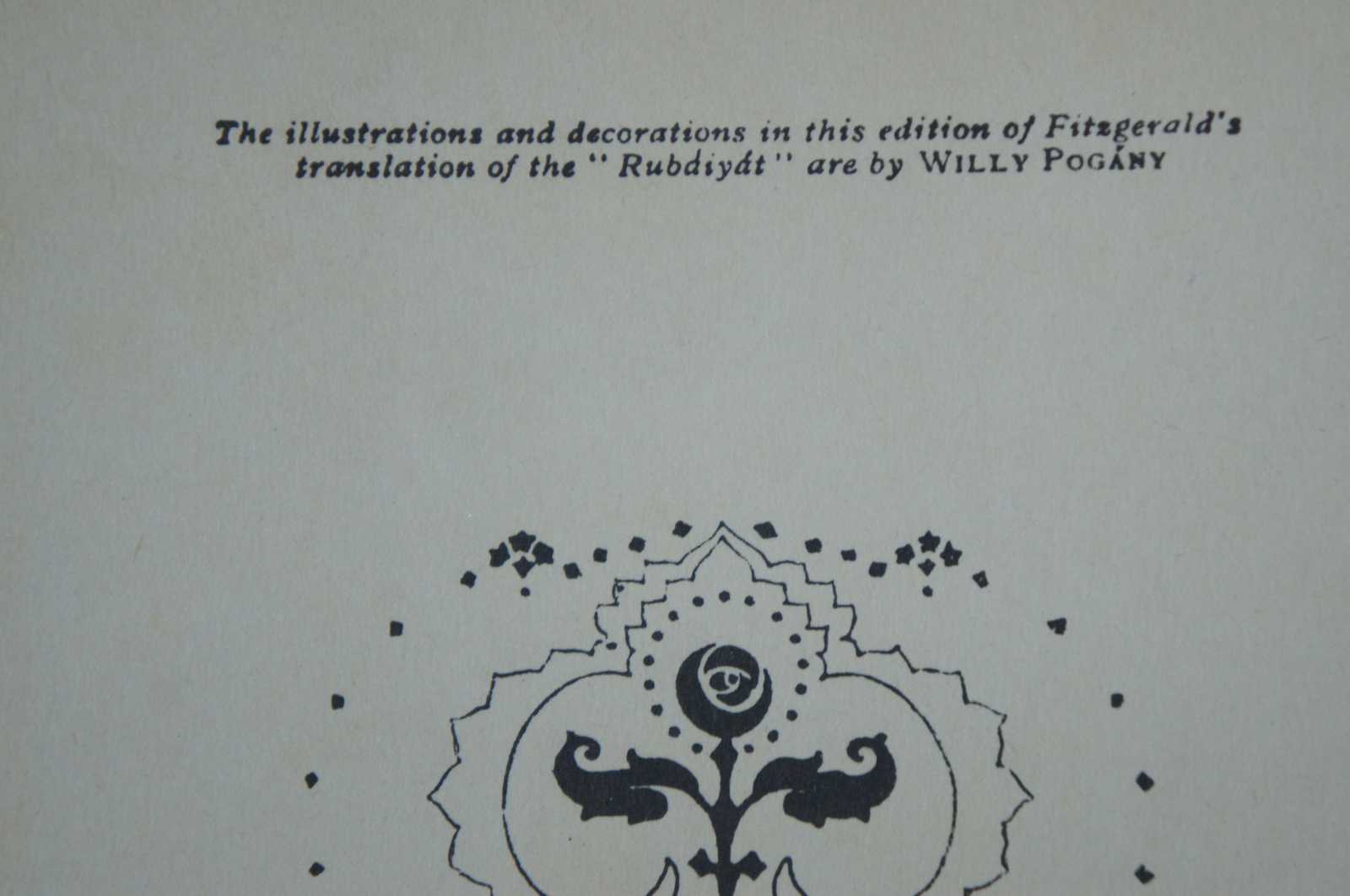 Antique hardback book, “Rubaiyat of Omar Khayyam” translated by Edward Fitzgerald, illustrated by Willy Pogany, published by William Godwin, Inc 1933.
