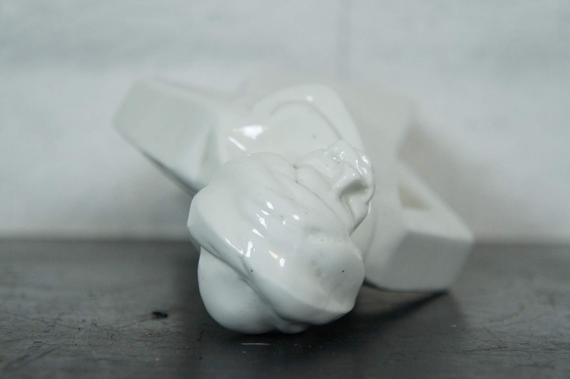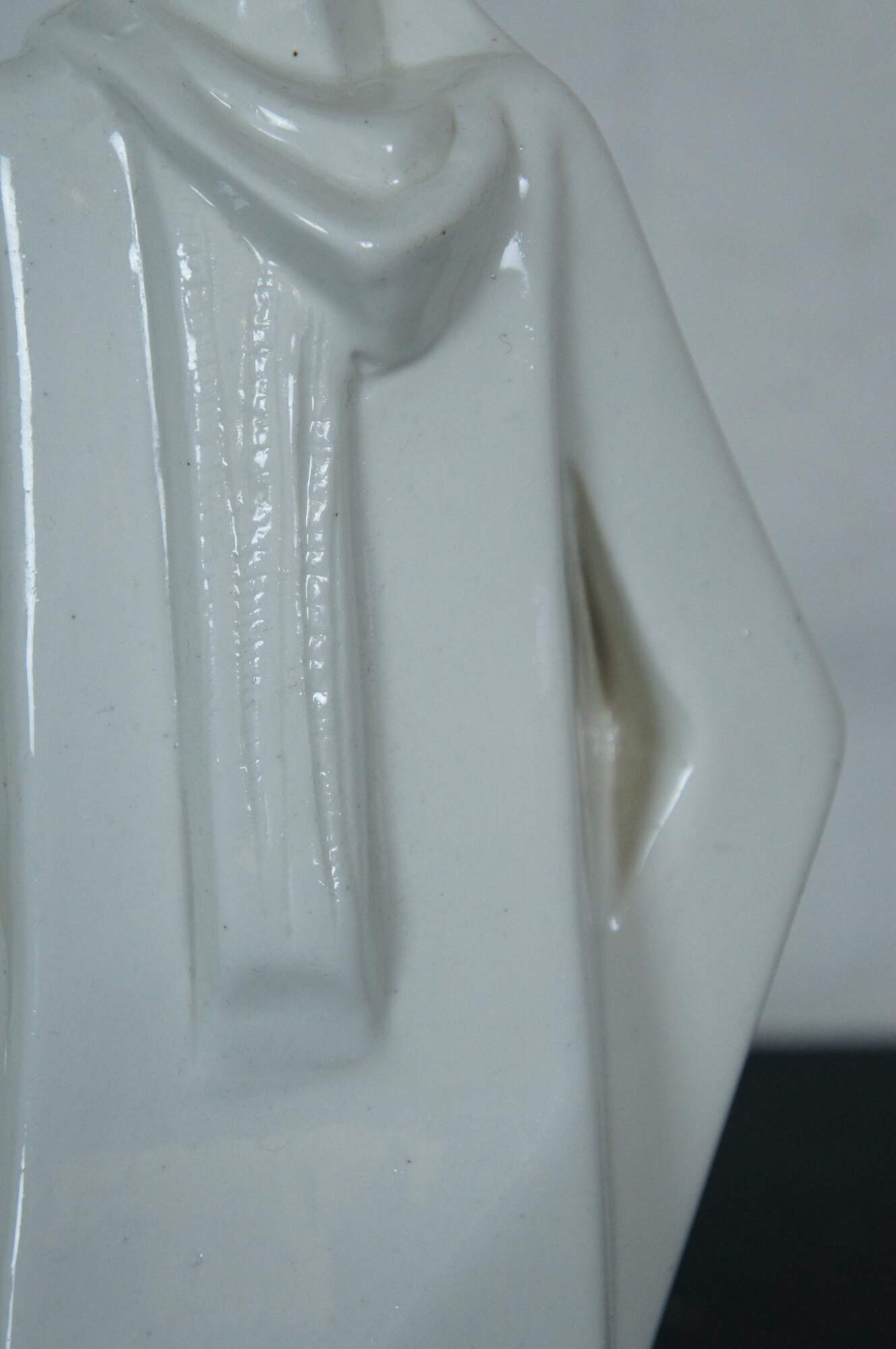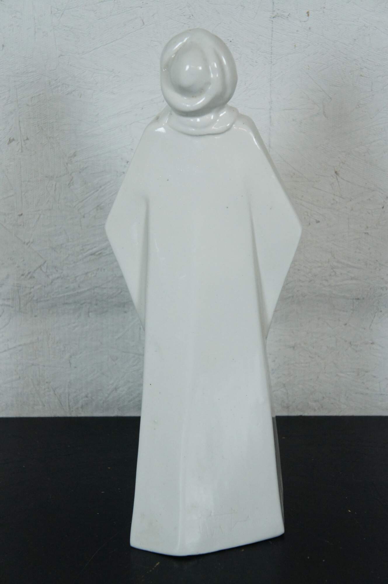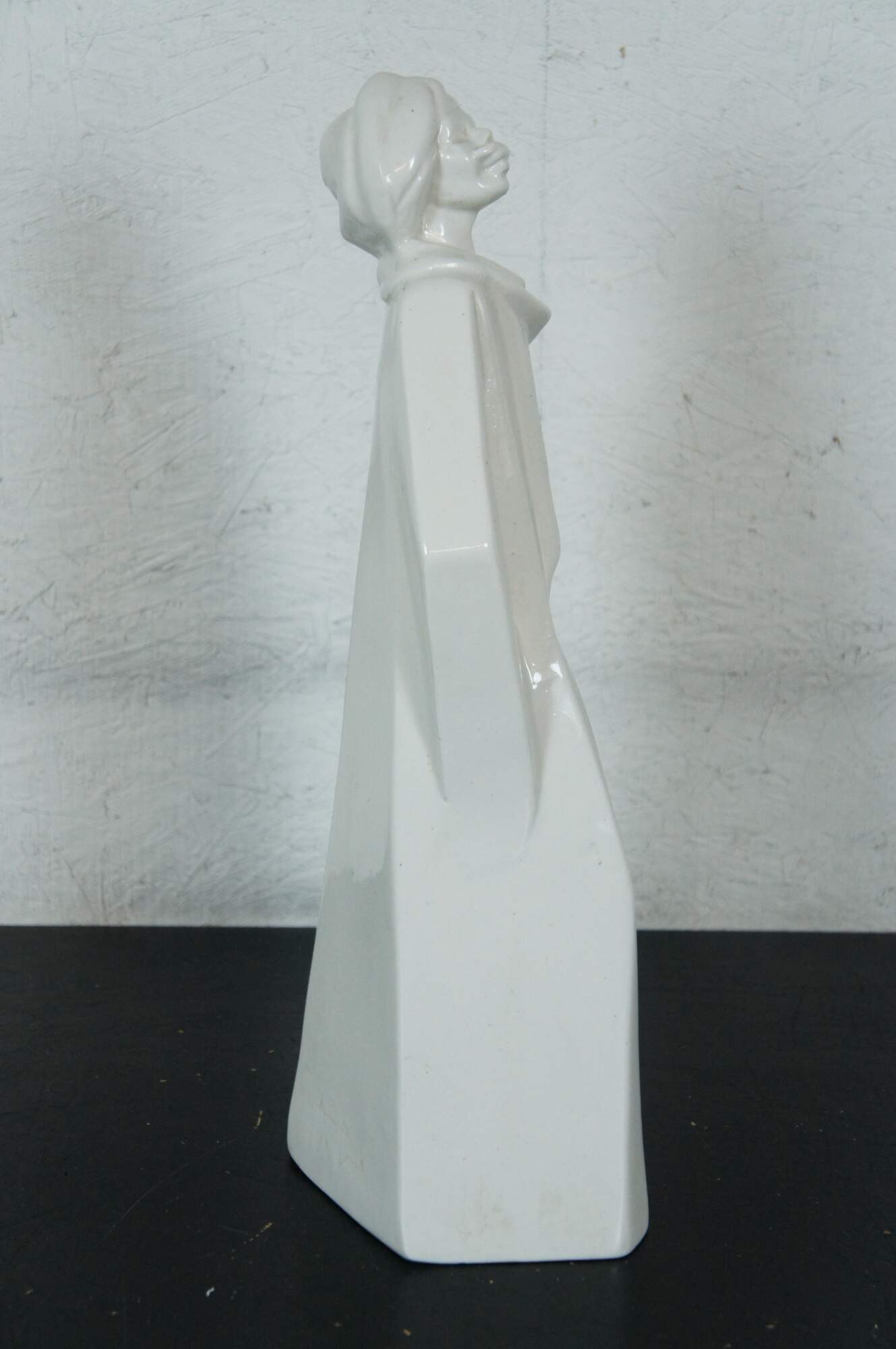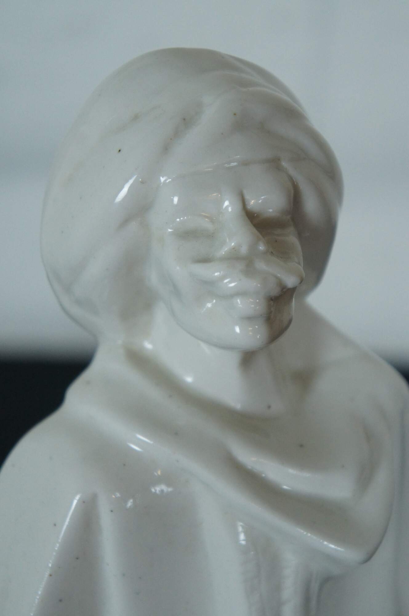 Vintage white porcelain statue purchased in Yemen / Egypt / Middle East circa 1980s with a mustache, wearing a turban, scarf, and long tunic.