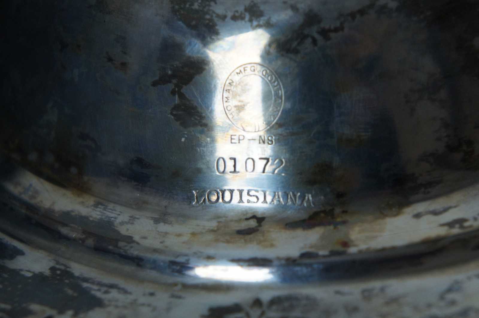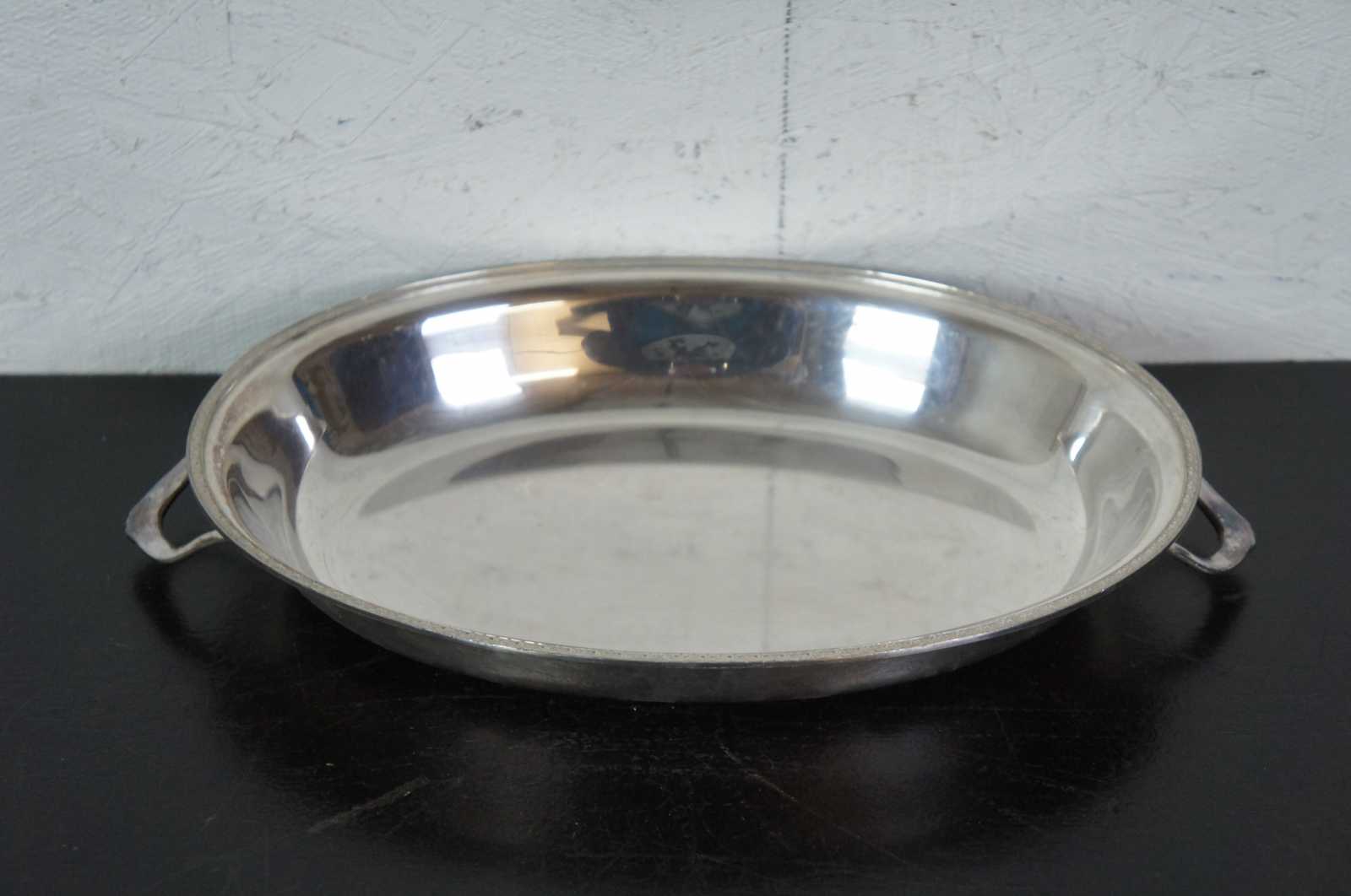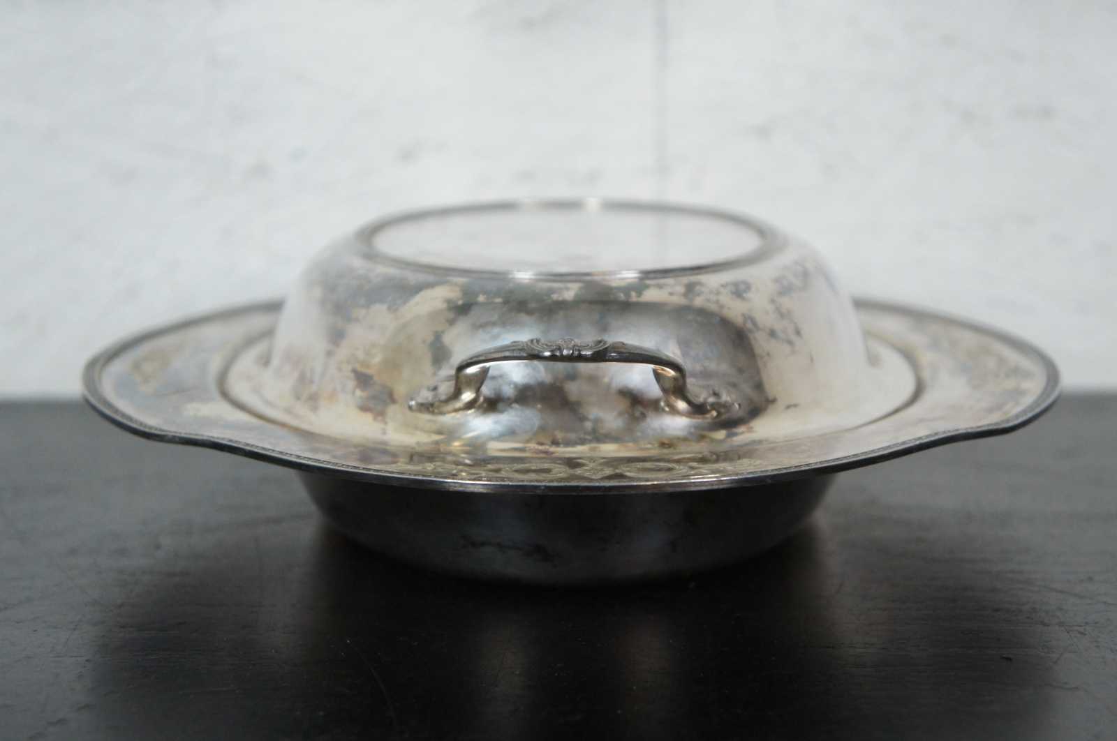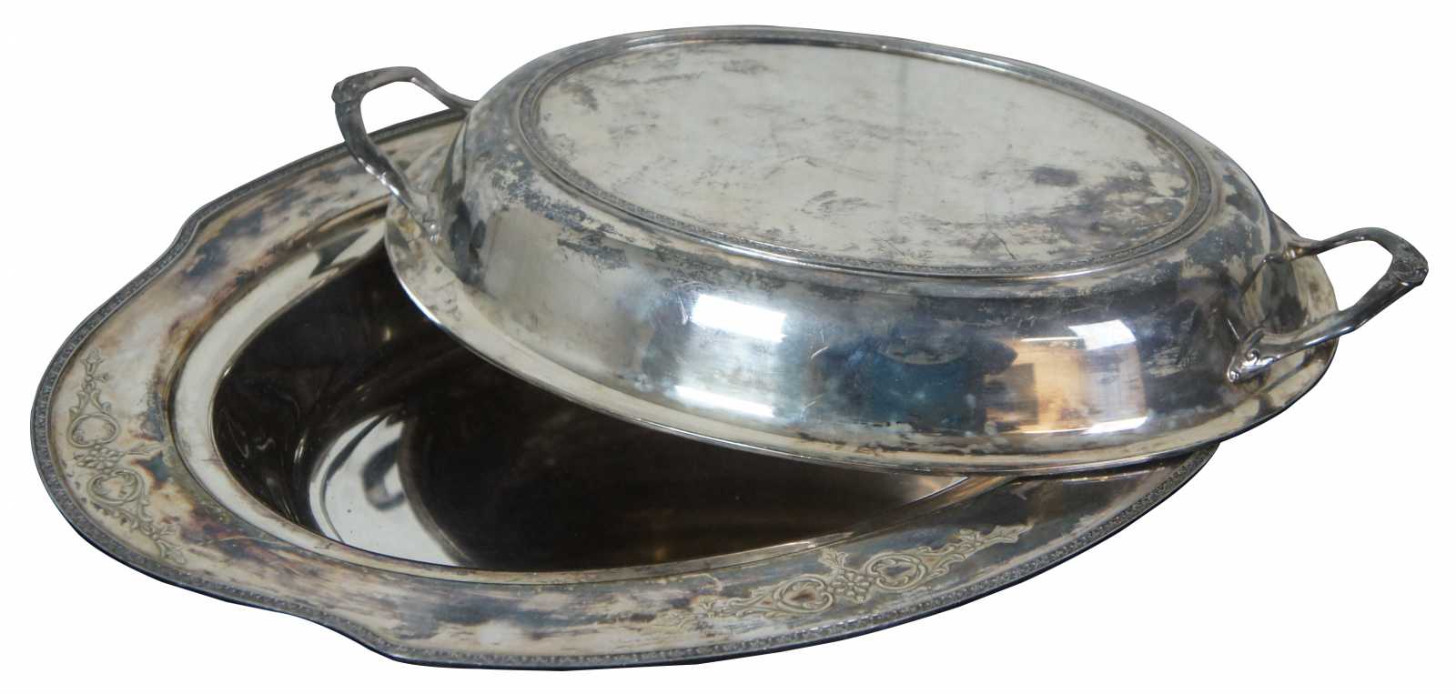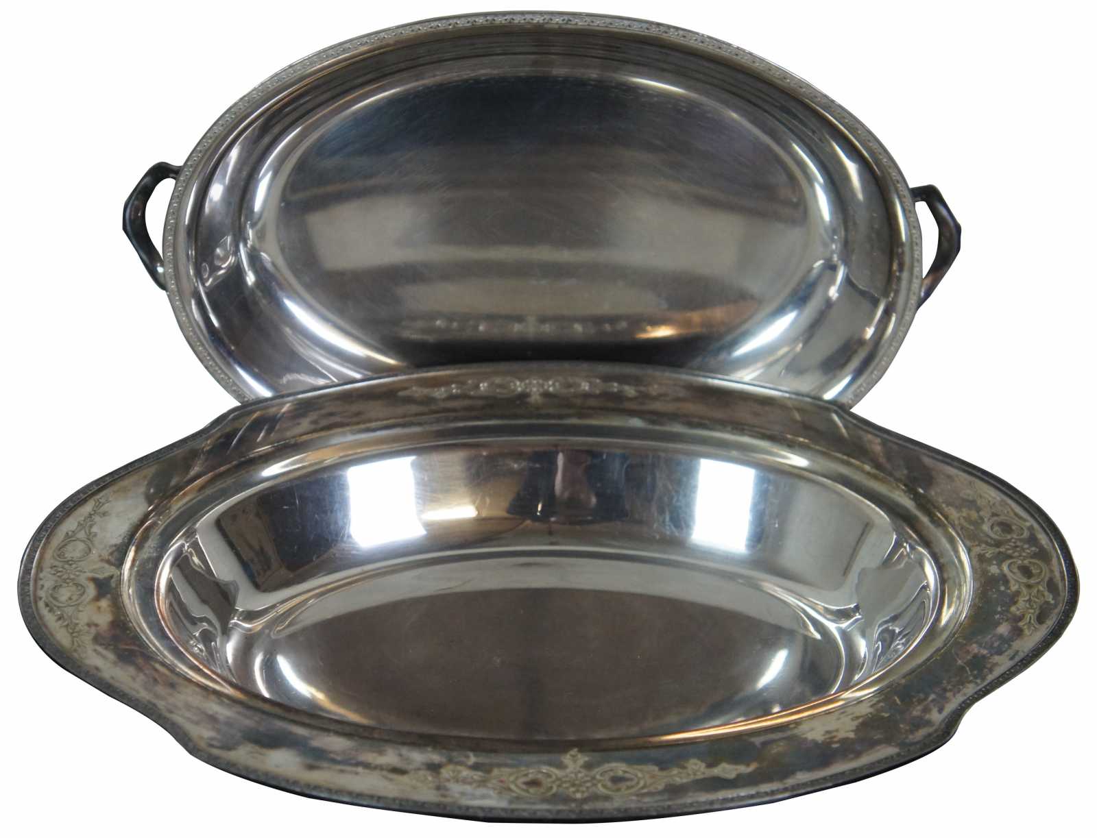Homan Manufacturing Company EPNS 01072 Louisiana silver plate oval serving or warming dish with double handled lid.