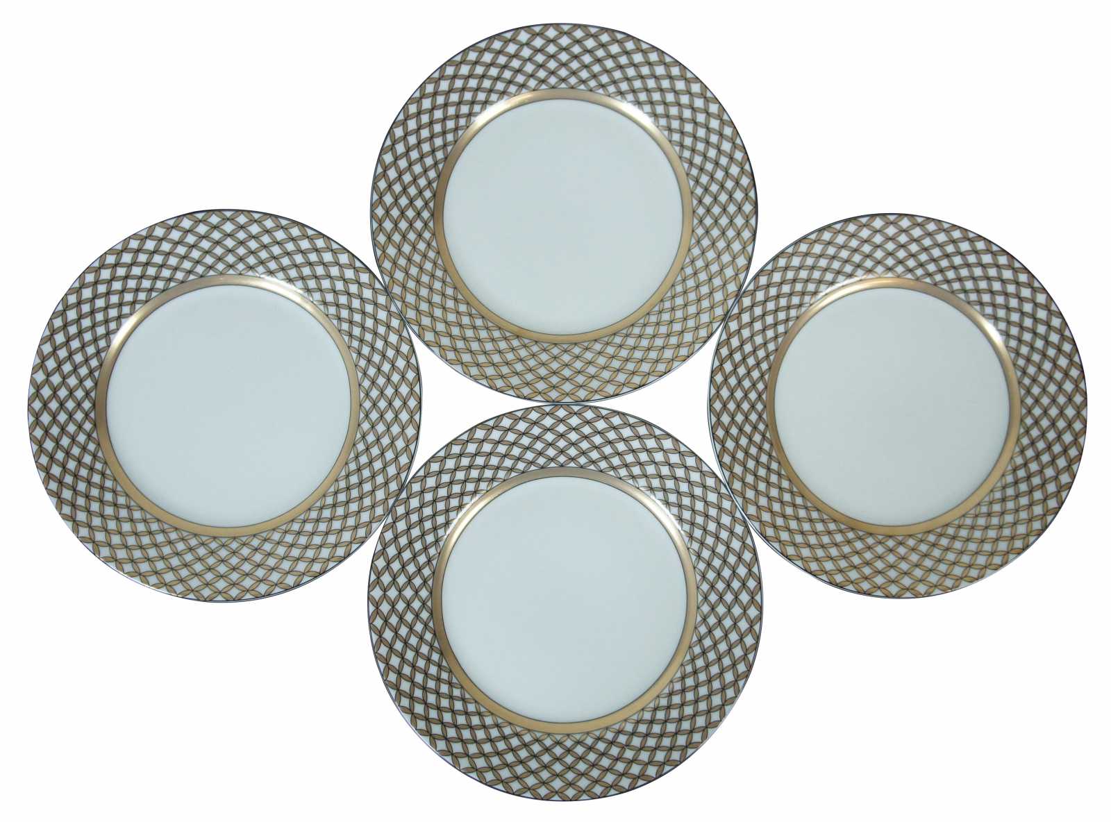 4 Fitz & Floyd Gold Cherbourg Porcelain Bread Salad Dessert Plates Japan 445 7"