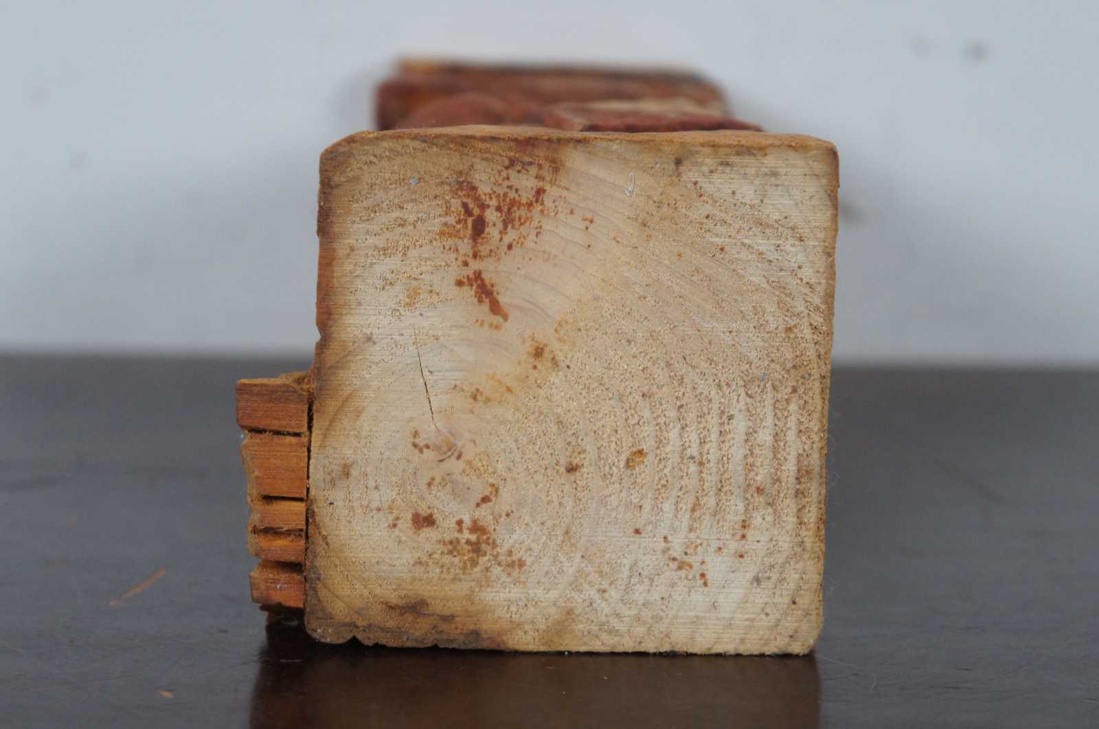 Vintage hand carved wooden log bust of an elderly American Indian Chief / man with braids and eagle feathers.