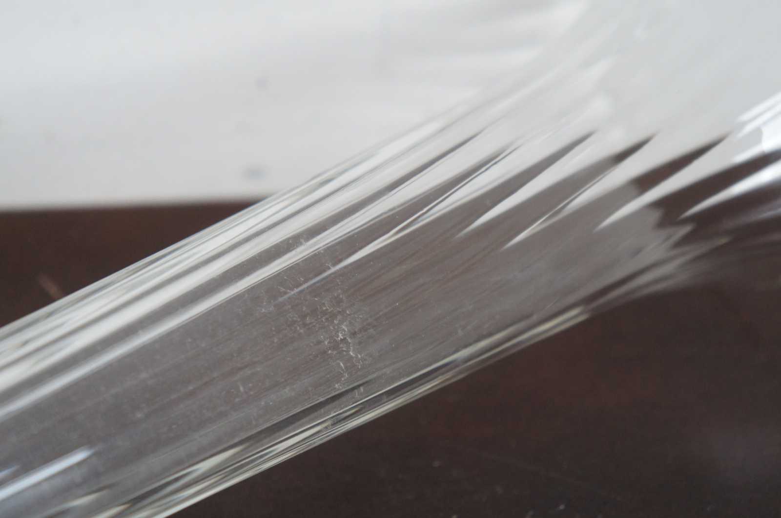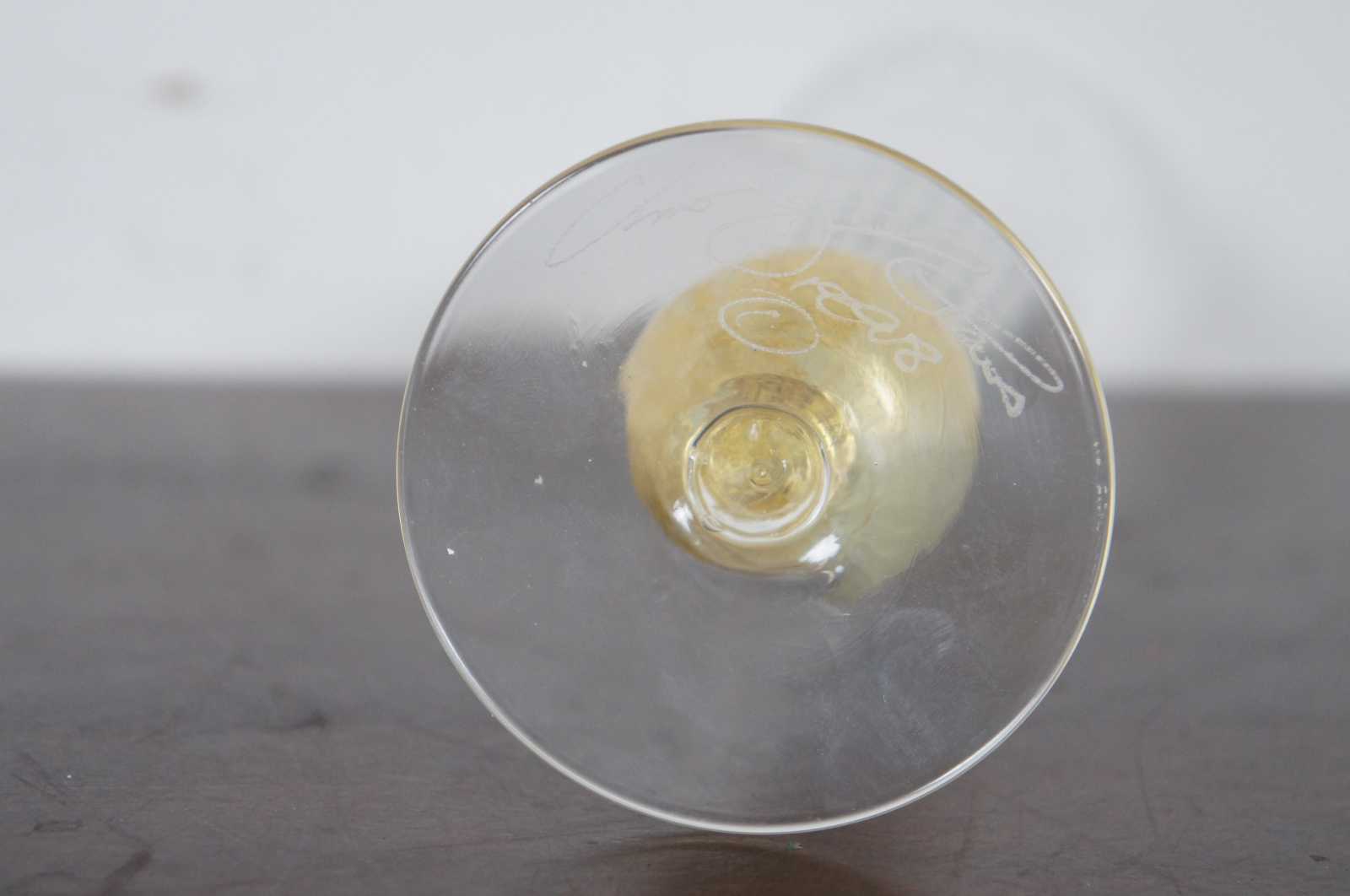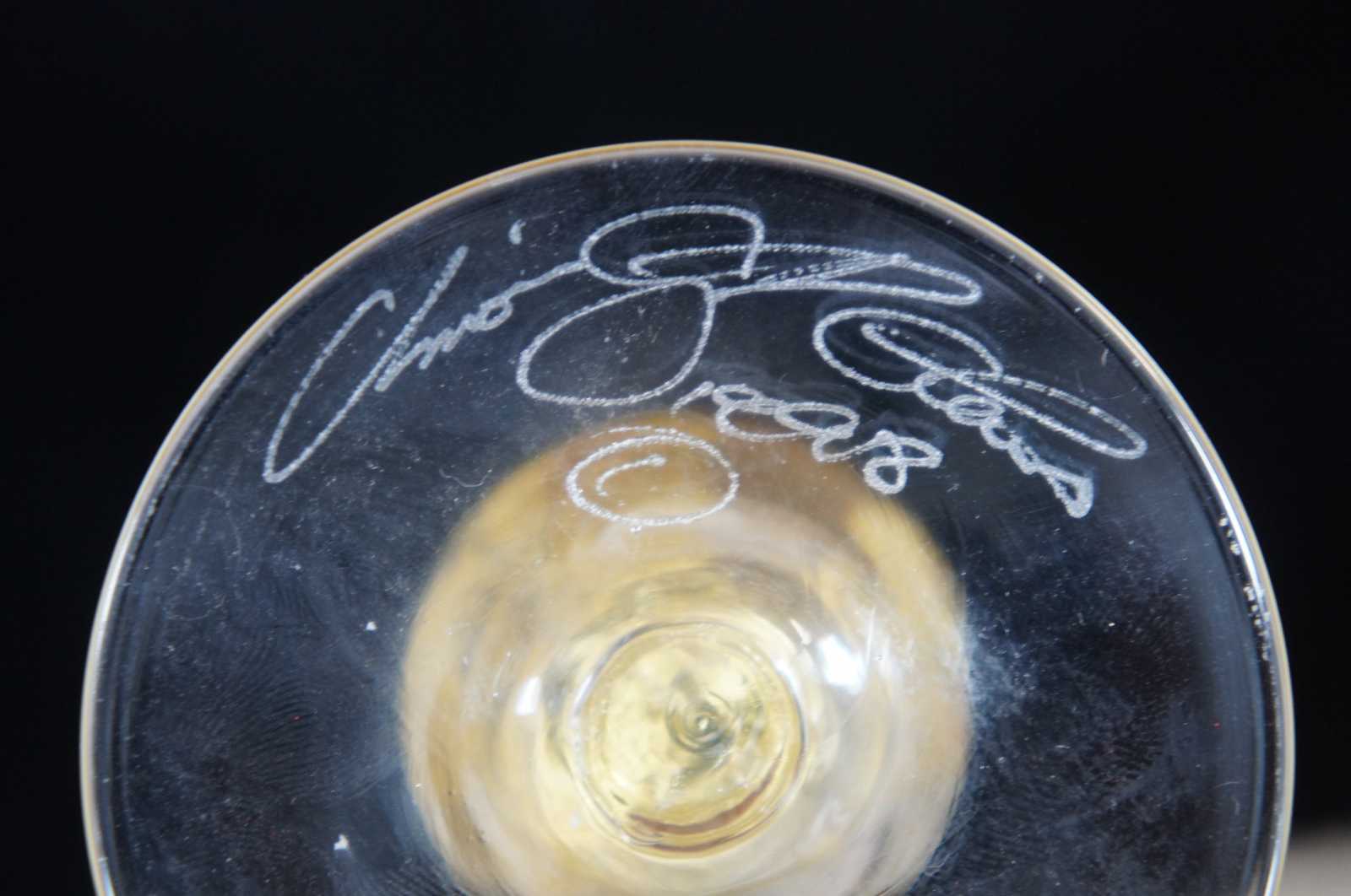 Vintage 1998 signed studio art glass vase with clear fluted neck, round foot and decorated with a speckled gold flake bauble or orb.