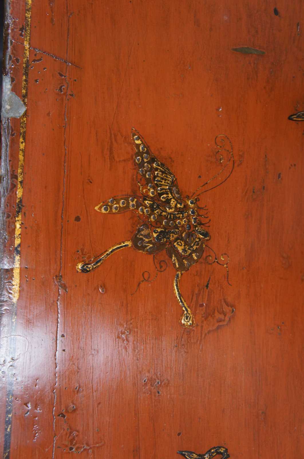 Good antique condition, paint loss, distressing, chipping to lacquer, crazing, see pictures.