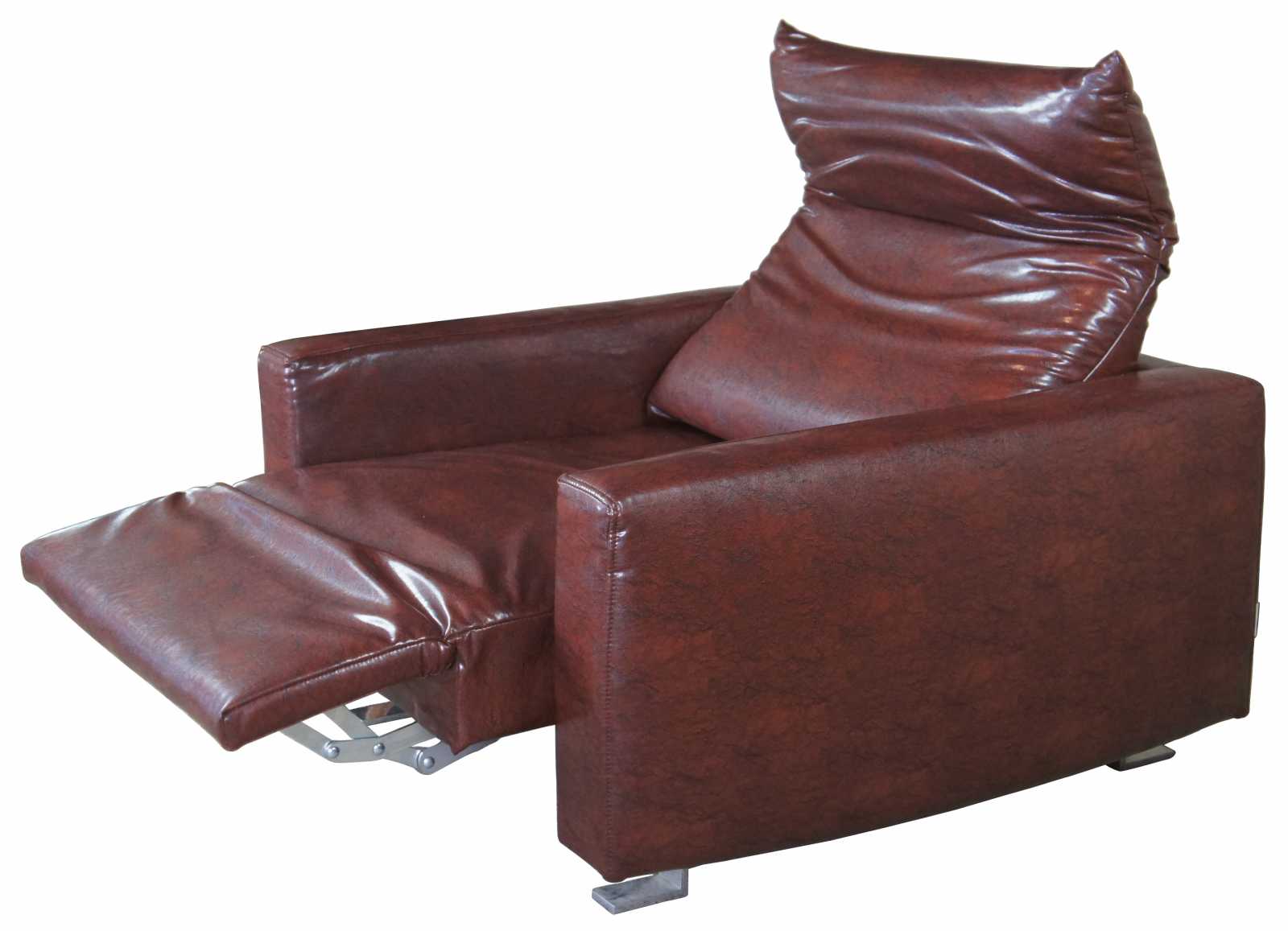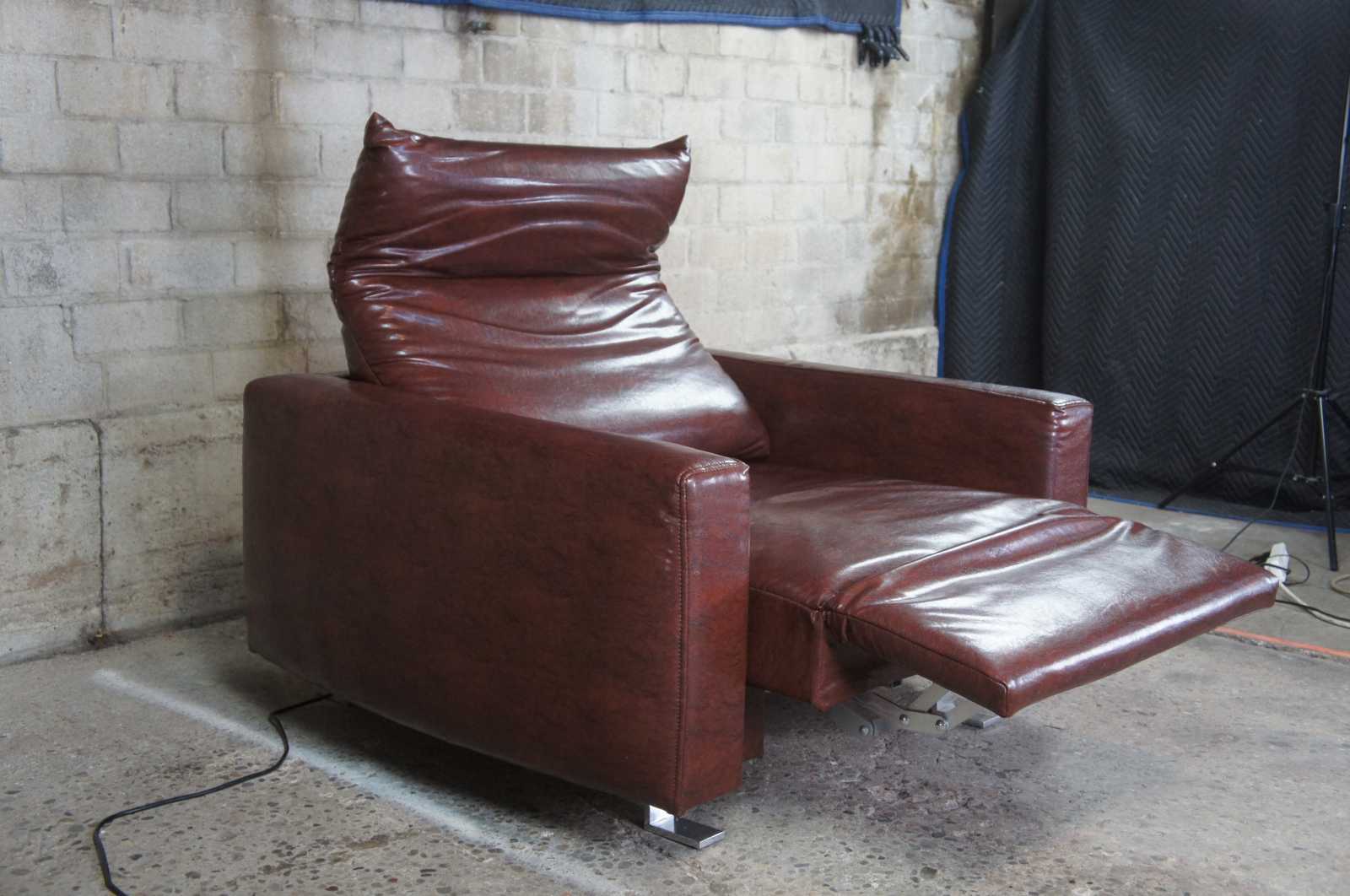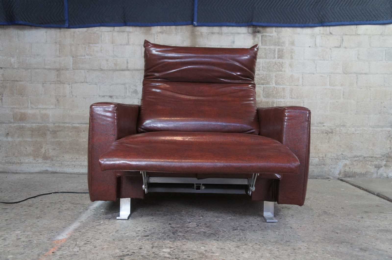 Vintage leather extendable lounge chair and a half. Made in Italy, featuring a swivel head rest and extendable seat with motorized foot rest and chrome legs.