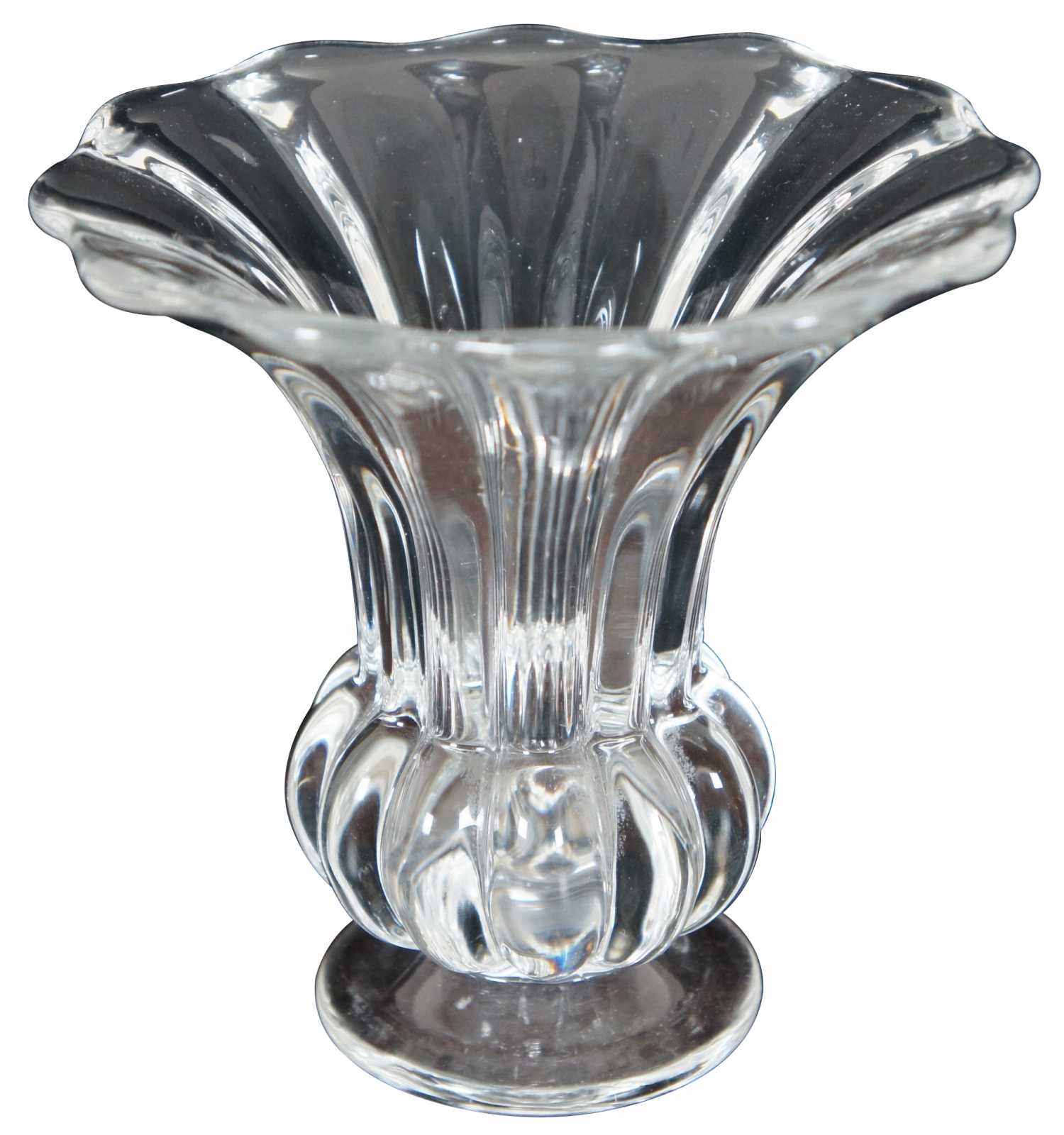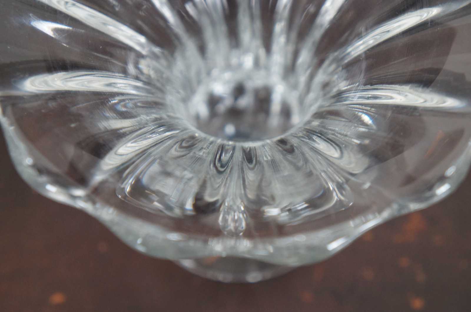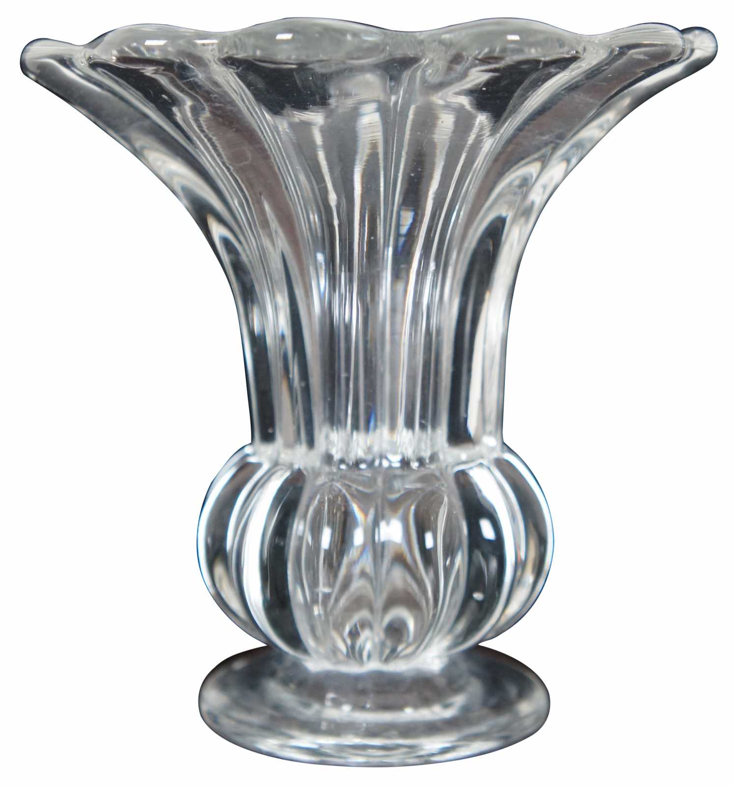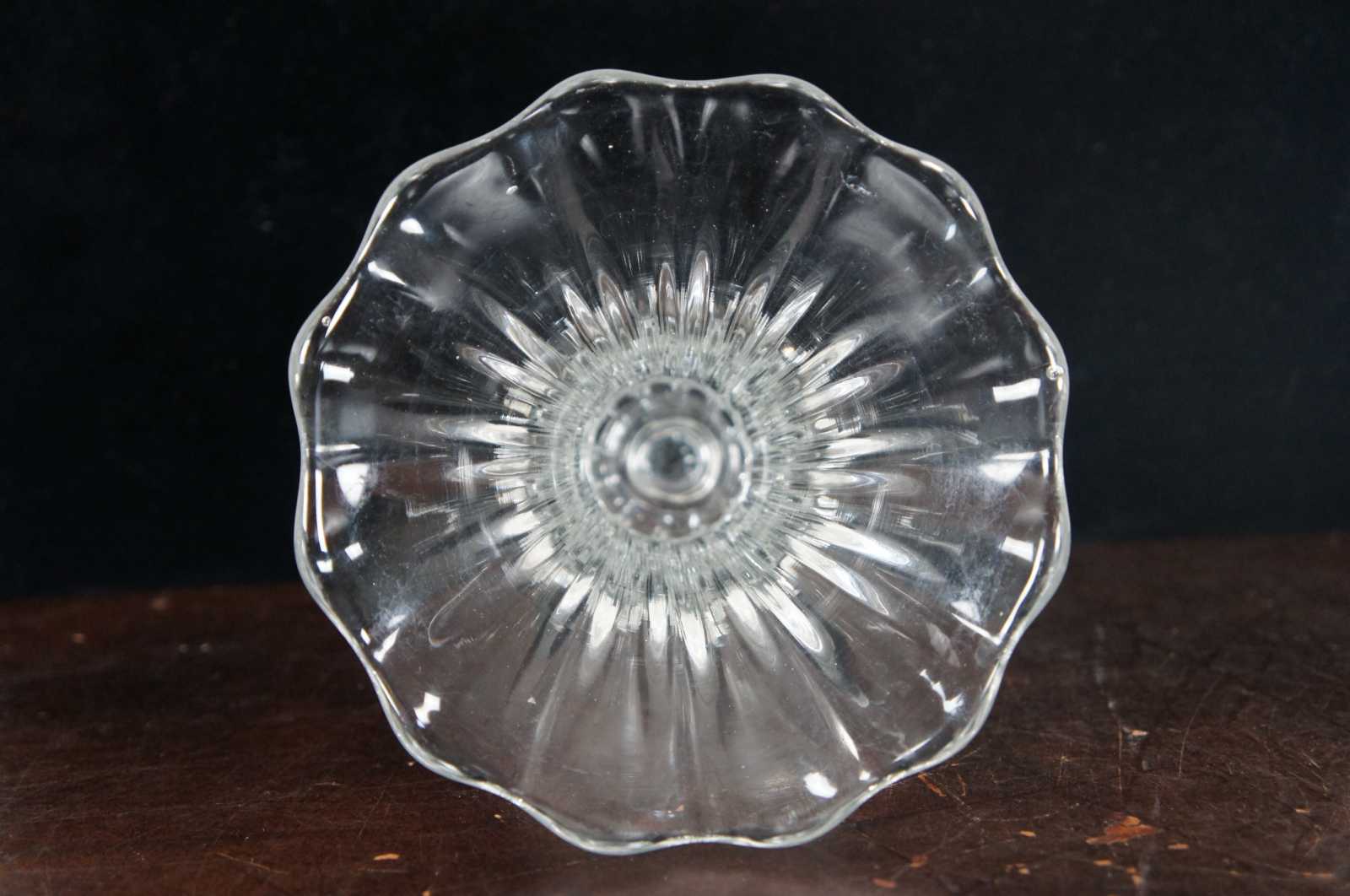 Pair of vintage Heisey glass flower vases in the Crystolite pattern.