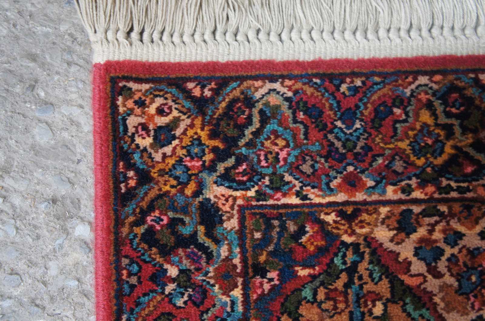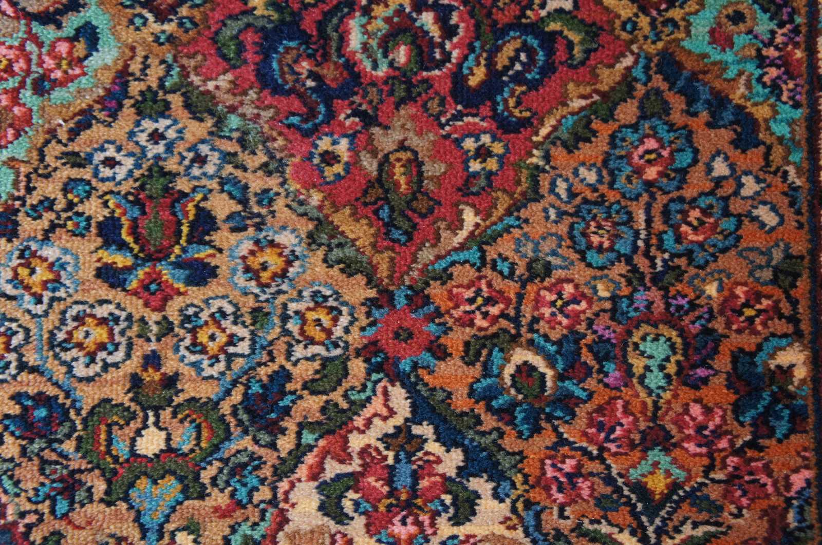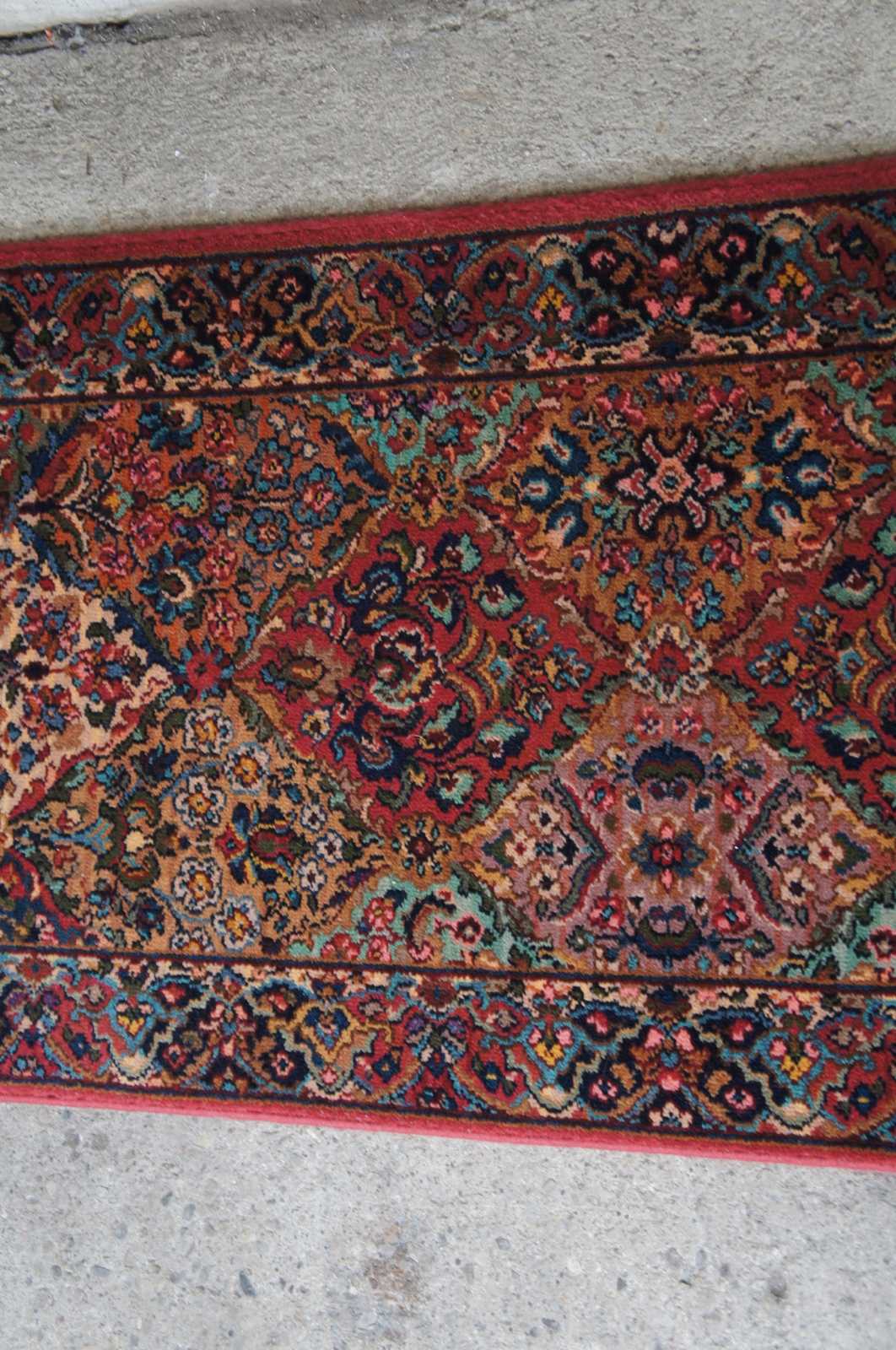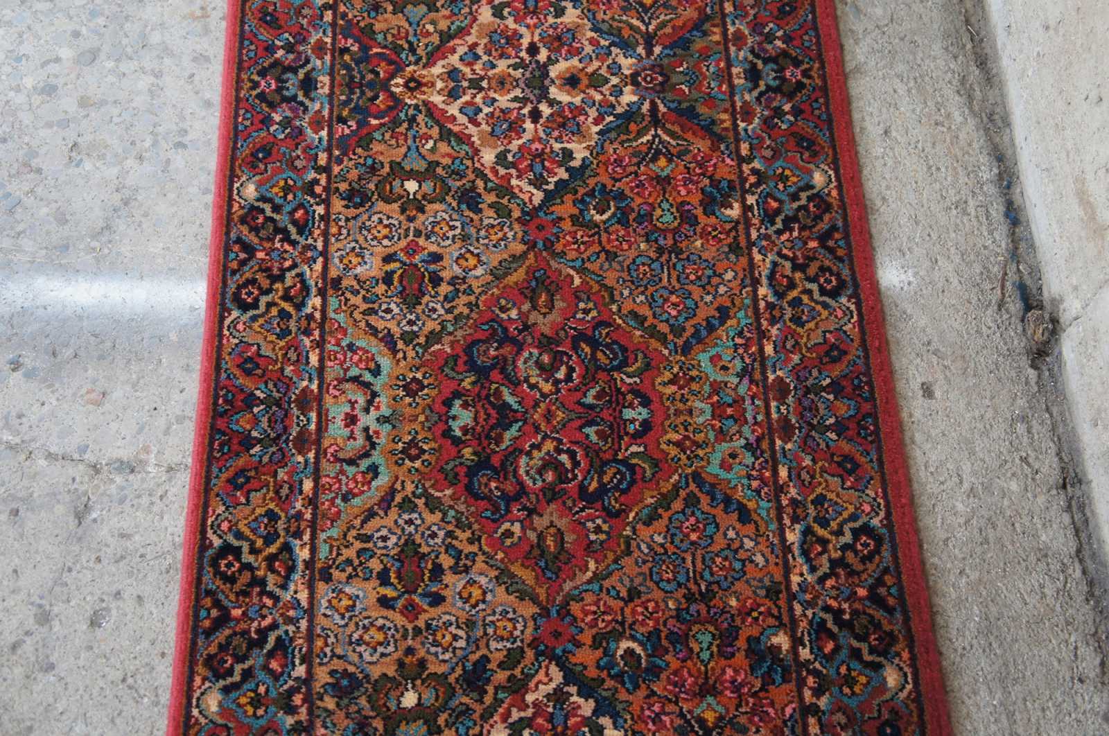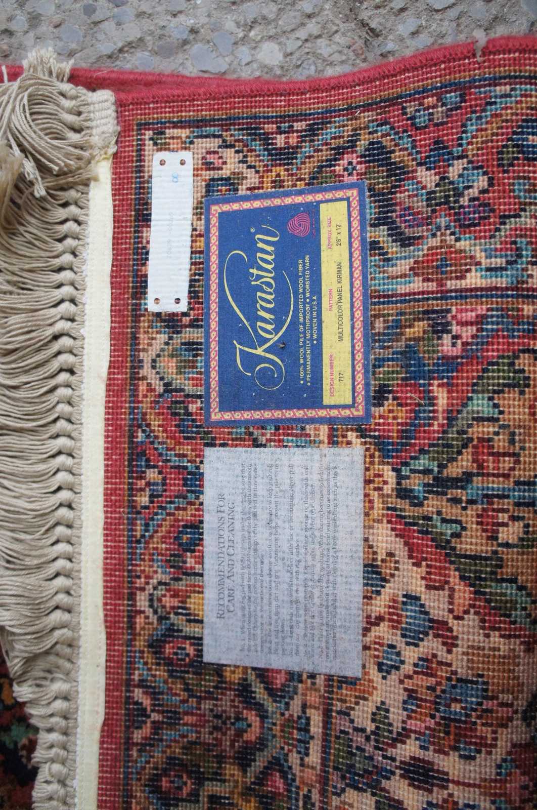 Vintage Karastan 100% worsted wool geometric multicolor panel Kirman rug or carpet. Design #717.