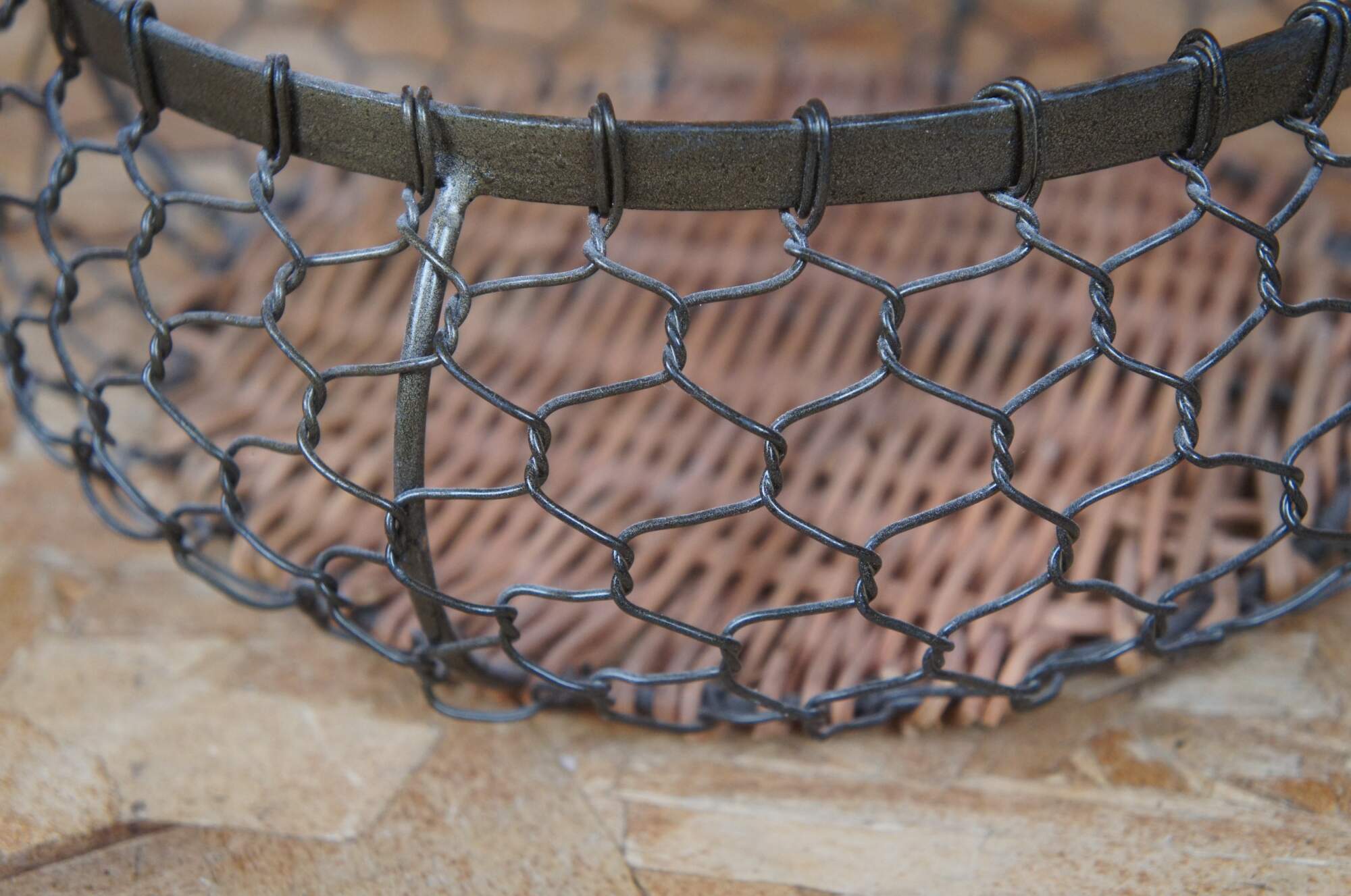 This wire and wicker basket is made in a lovely rustic farmhouse design that brings to mind egg gathering.