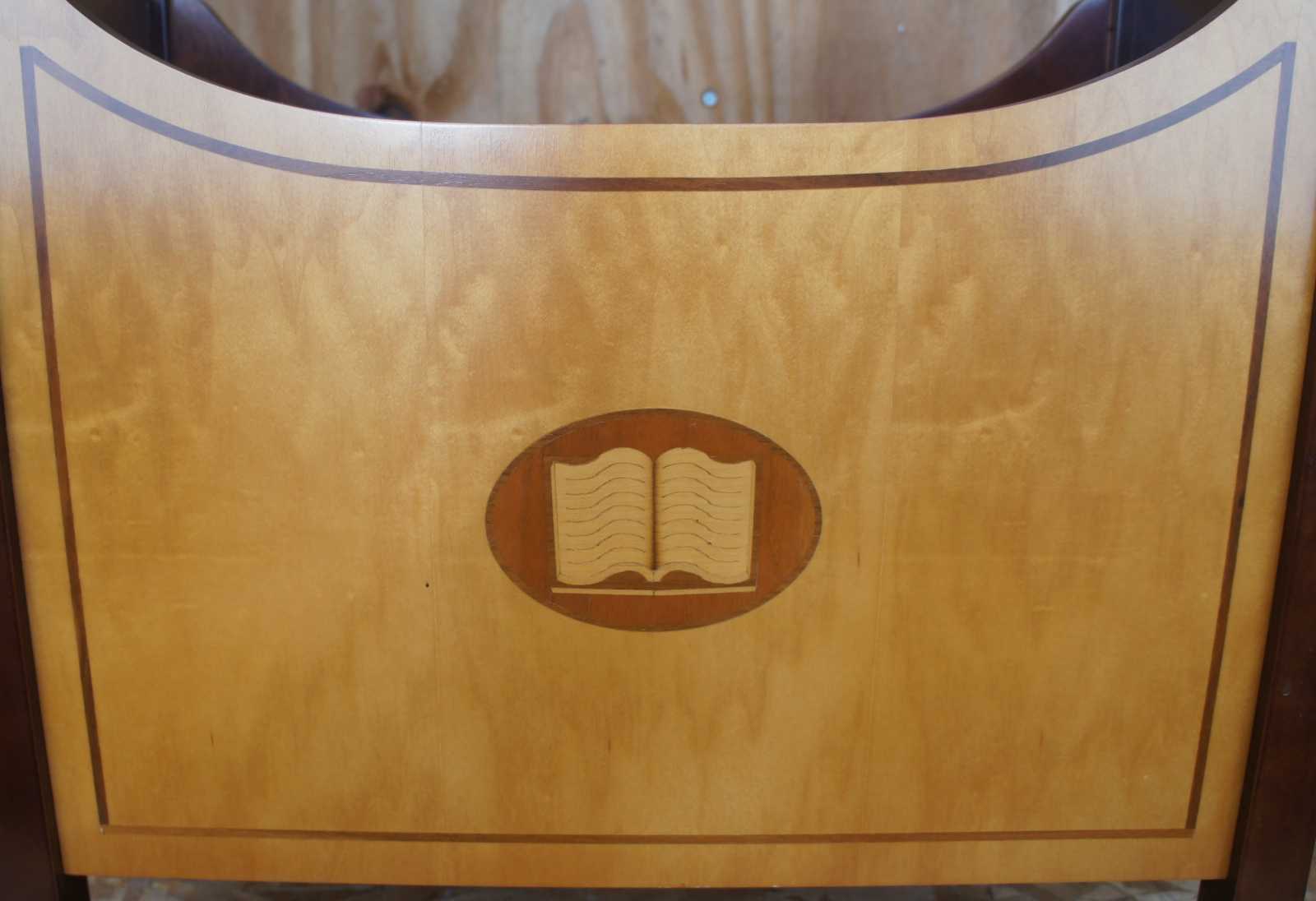 Vintage 1986 inlaid wood Canterbury magazine or book holder featuring brass accents.