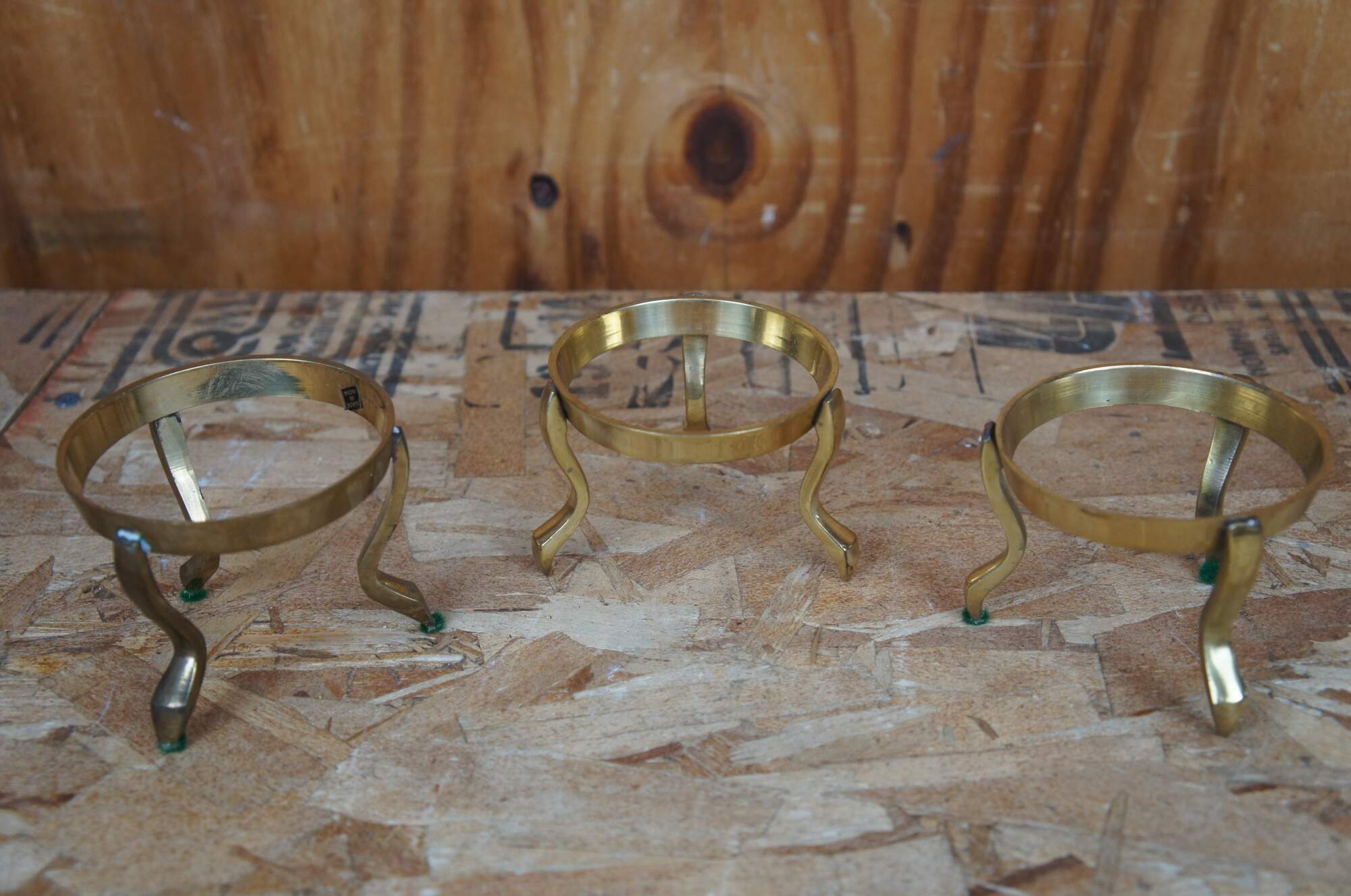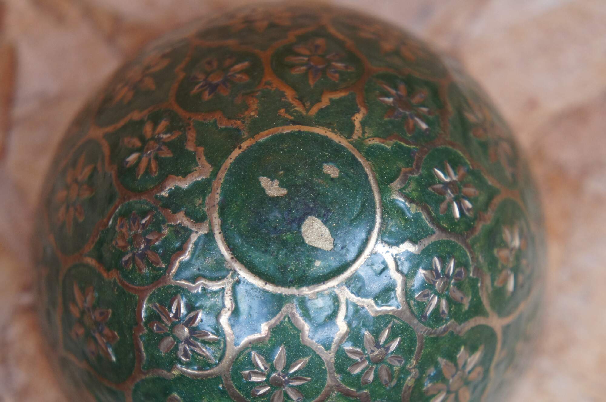 Lot of 3 intricate brass enameled decorative jewelry trinket cases on matching stands.