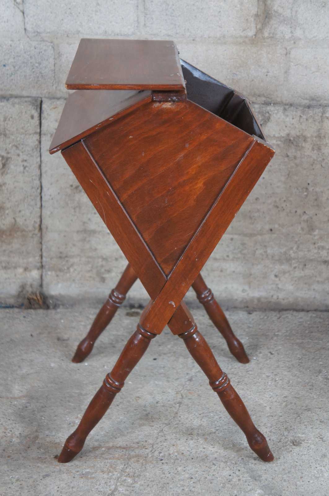 Another 20th century non-survivor is the “Priscilla” – a utilitarian sewing stand that appeared in the early 1920s, apparently named for the treadle type sewing machine of the period and its accompanying magazine “Modern Priscilla.”